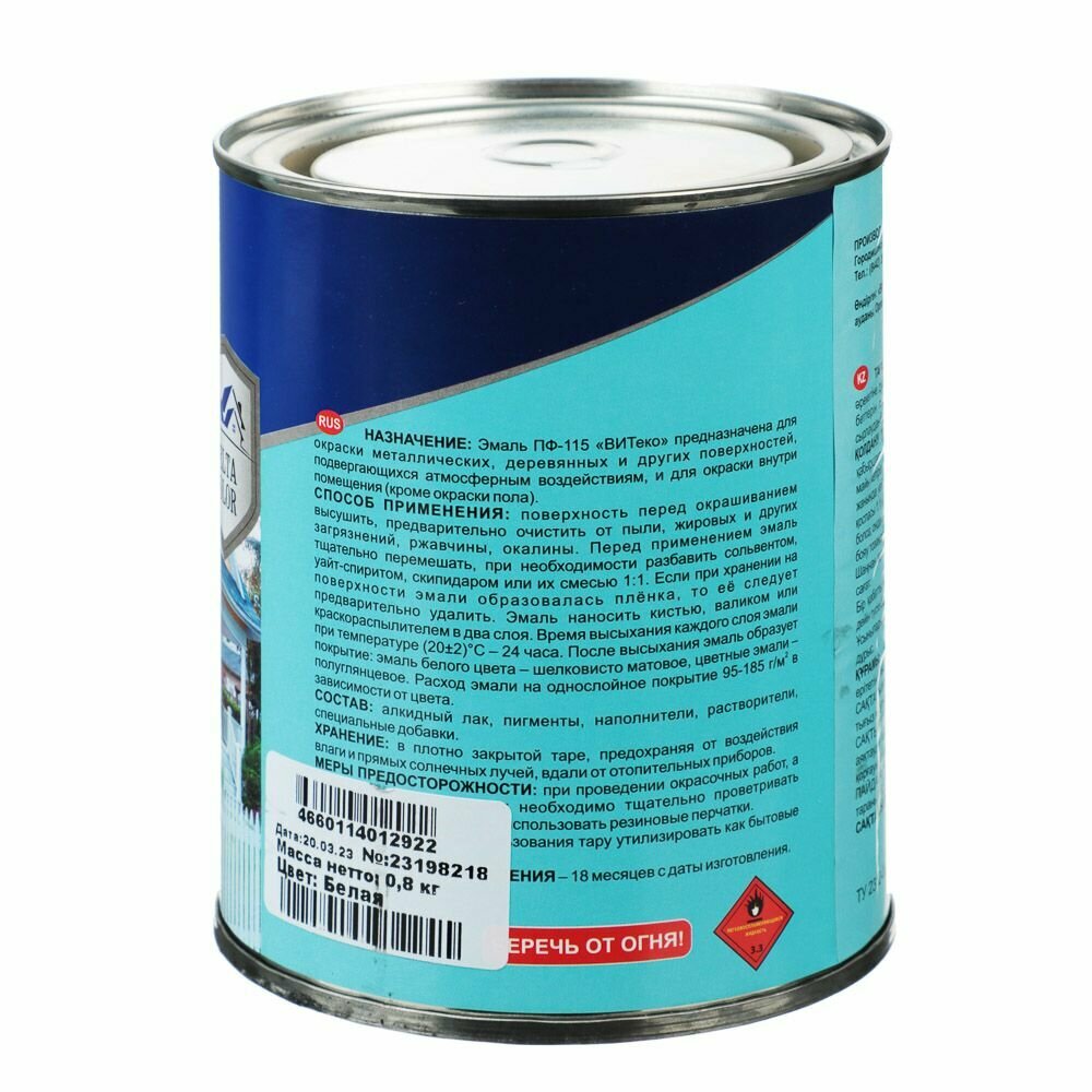 Эмаль ПФ-115 Белая 0,8кг информация: