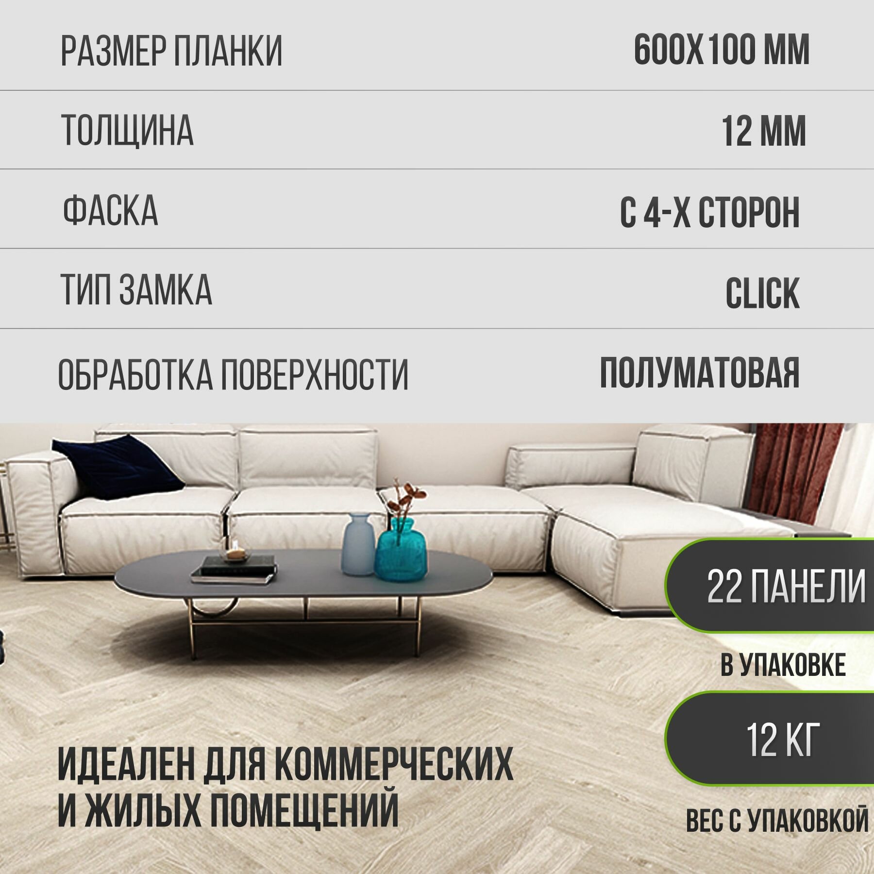 Ламинат напольный влагостойкий WOODSTYLE ARROW 34 класс, толщина 12 мм с фаской, ДУБ леголас 102 информация: