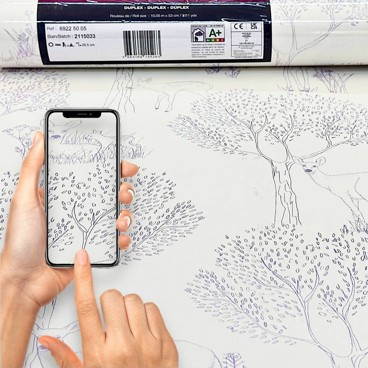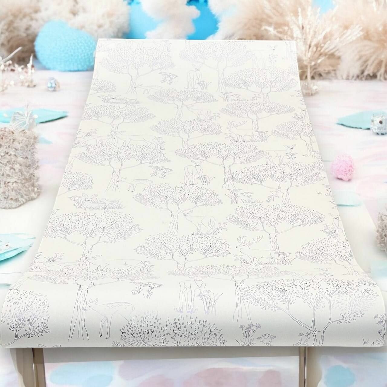 10 цен на Детские бумажные обои французкой фабрики премиум класса Caselio Pretty Lili 69225005, фиолетовые деревья с олененком, на светлом фоне, моющиеся, Франция