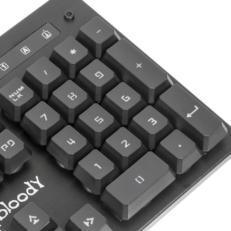Игровая клавиатура Bloody, черный, кириллица+QWERTY, с подсветкой, мембранная