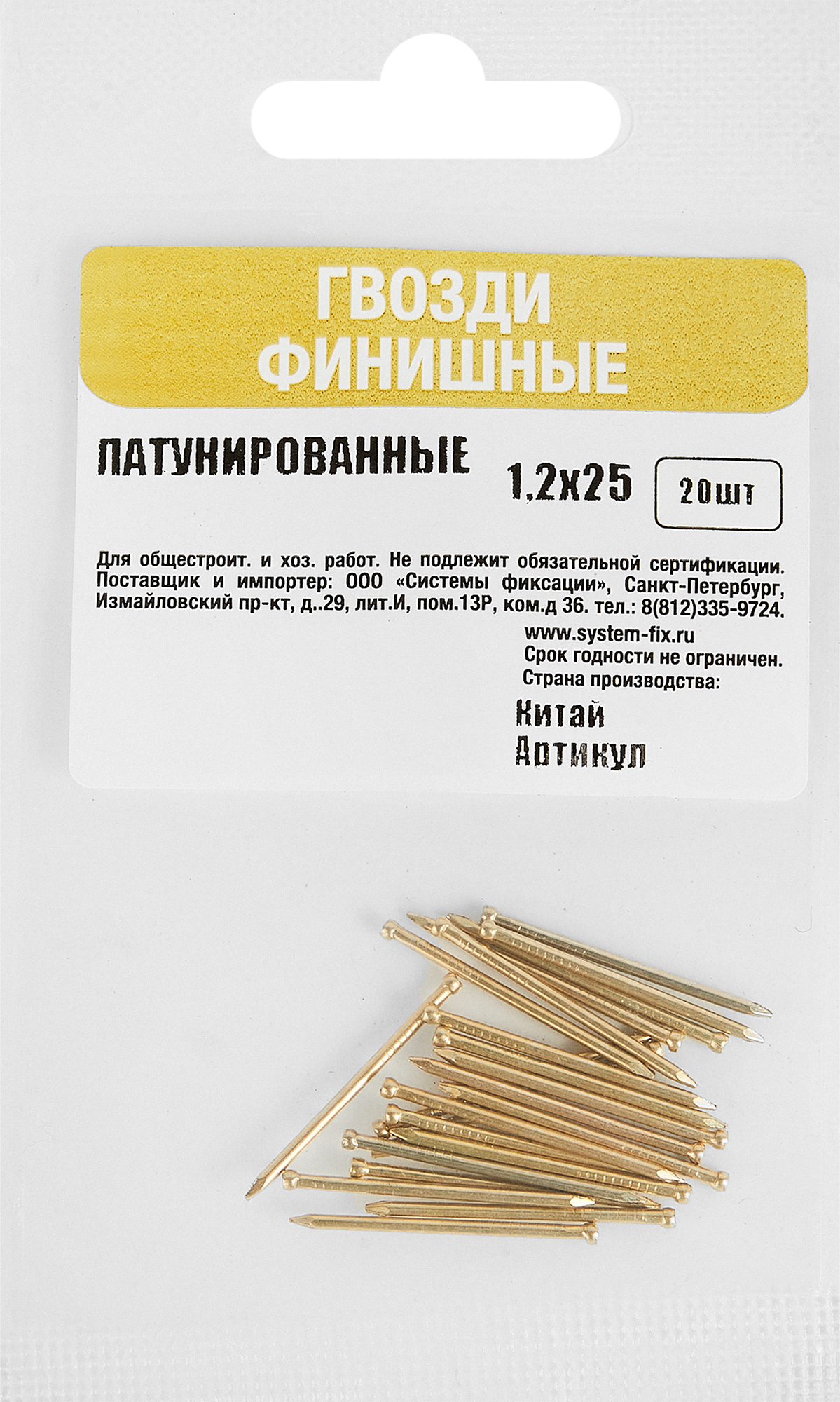 Гвозди финишные латунированные Tech-Krep 1.2x25 мм, 20 шт. информация: