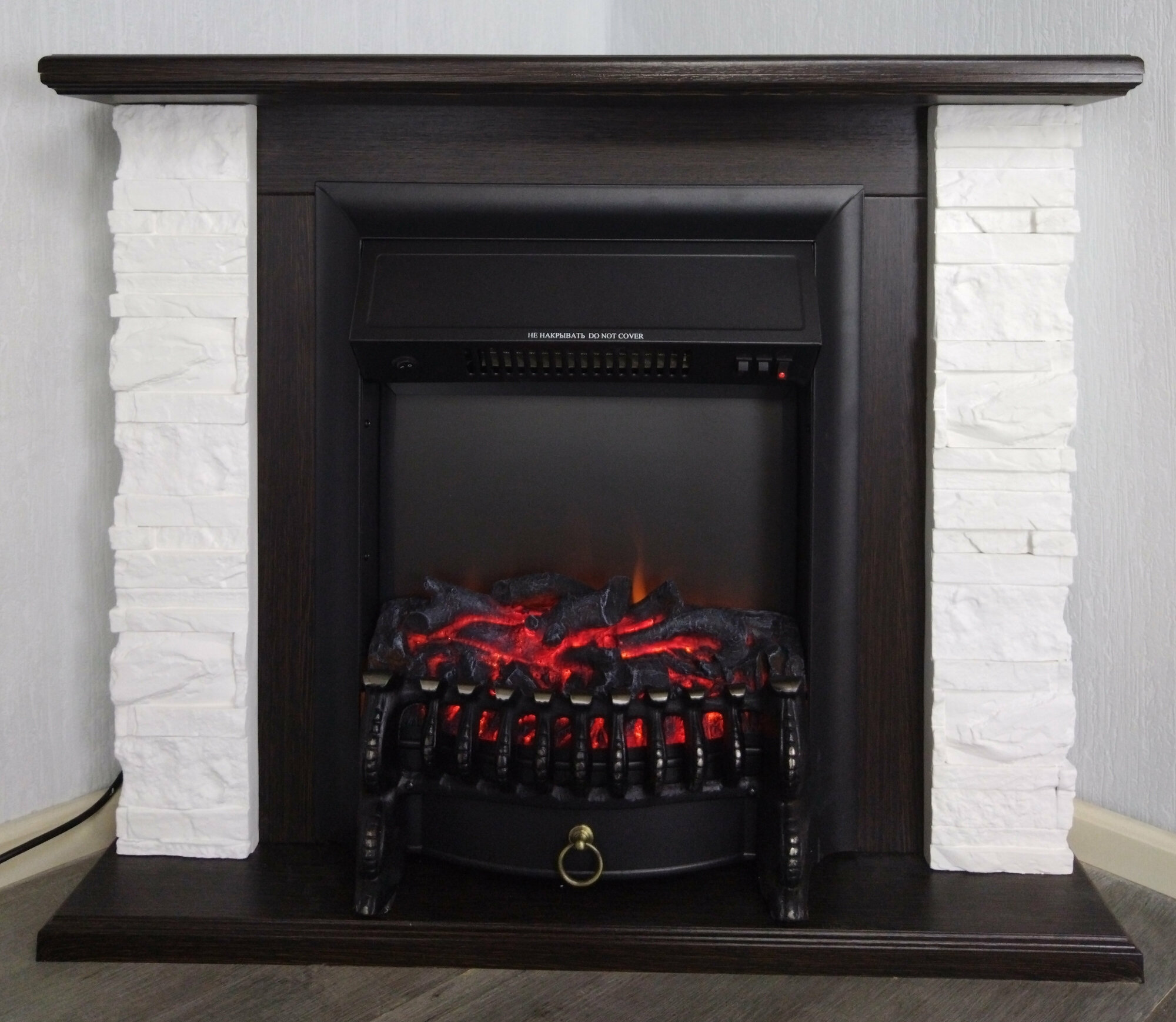 Угловой электрокамин Мальта с очагом Fobos, Венге/камень белый информация: