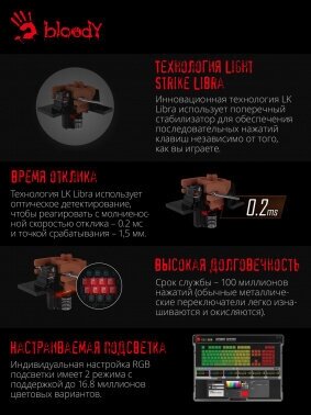 Клавиатура Bloody, игровая клавиатура, механика, чёрный, с подсветкой
