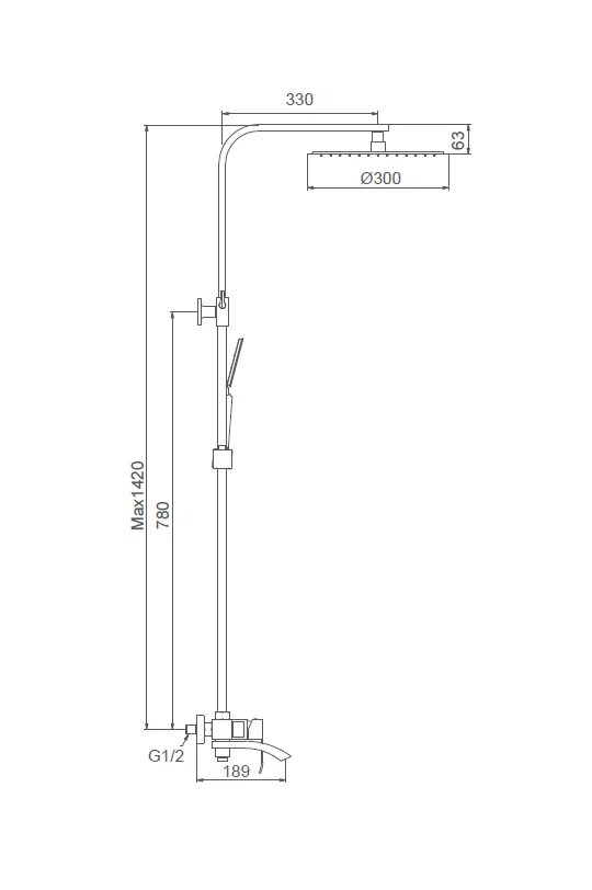 | Комплектация | верхний душ / держатель лейки / лейка / набор эксцентриков / Смеситель / шланг |