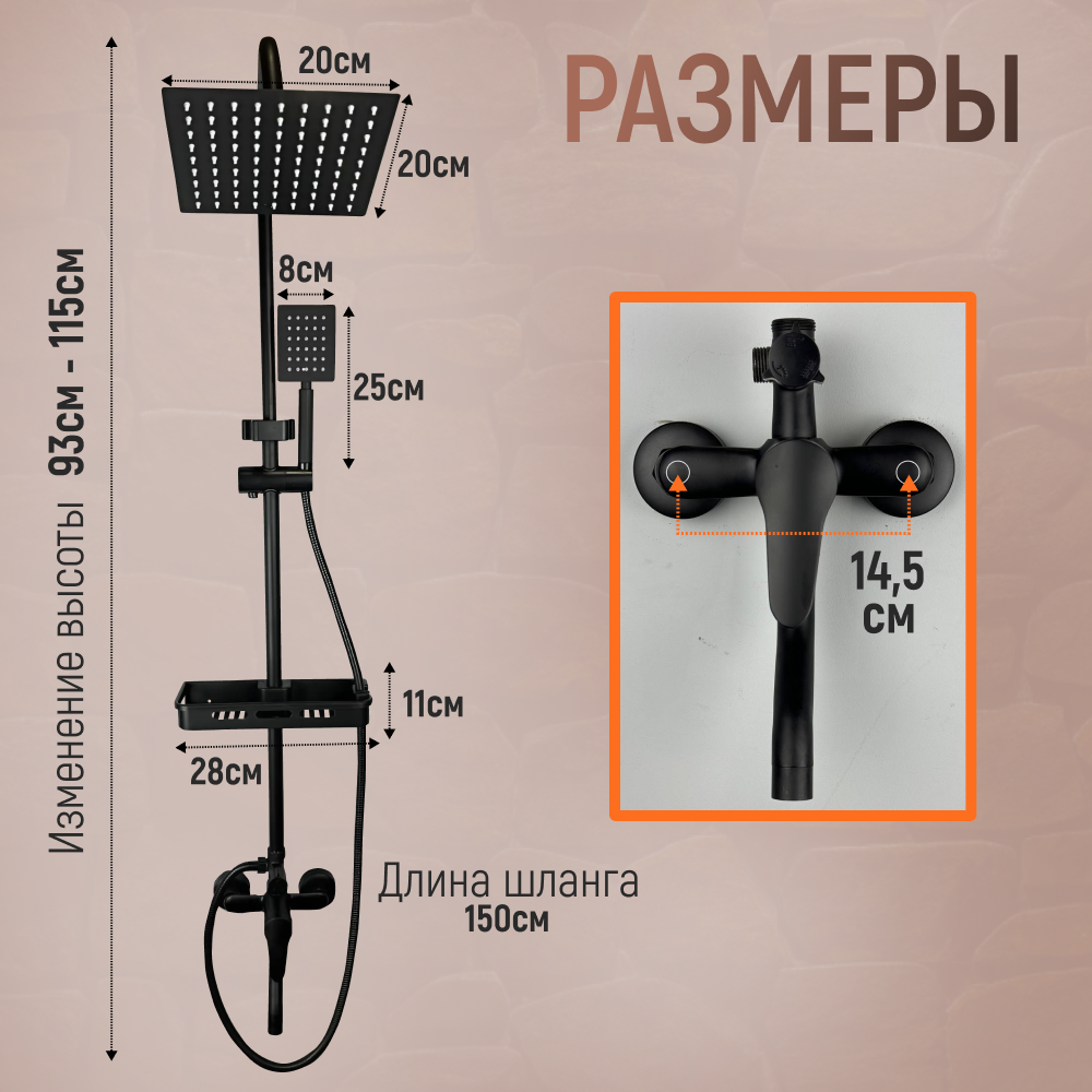 Душевая система с тропическим душем, черная, гарнитур в ванную информация: