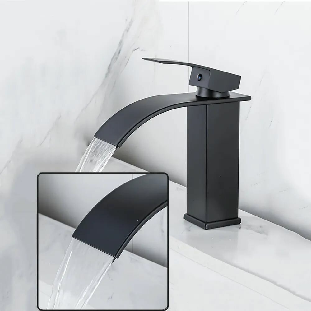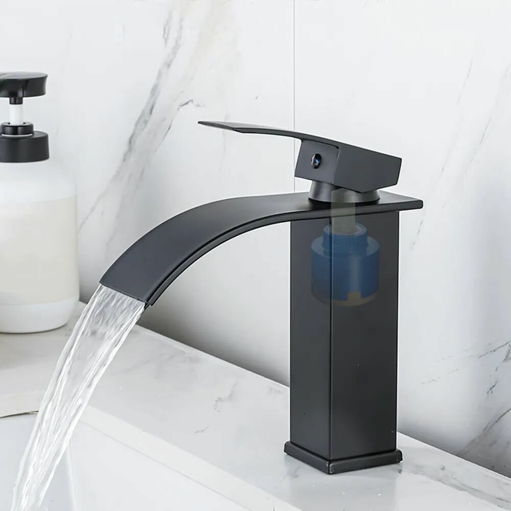 10 цен на Смеситель для раковины с водопадом однорычажный латунь черный