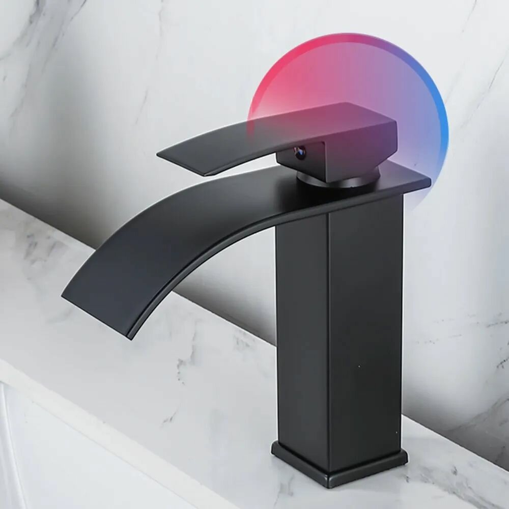 Смеситель для раковины с водопадом однорычажный латунь черный информация: