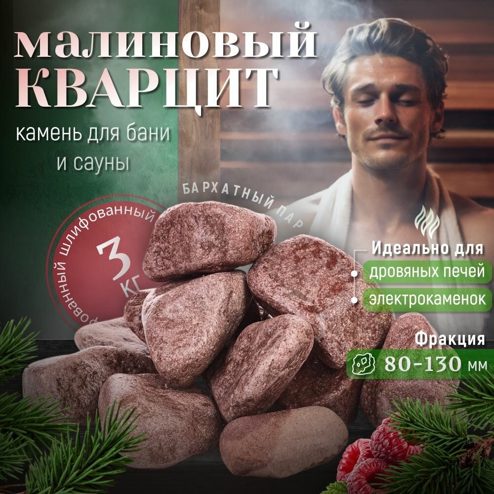 10 цен на Малиновый Кварцит шлифованный 3 кг. (фракция 80-130 мм.)