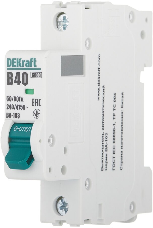 Мы выбрали 10 лучших цен на Автоматический выключатель модульный Dekraft BA-103 1P 40А тип B 6 кА 230-400 В (12213DEK). Перед тем как купить Автоматический выключатель модульный Dekraft BA-103 1P 40А тип B 6 кА 230-400 В (12213DEK) посмотрите найденные предложения из Яндекс Маркета и других сайтов на основе XML фидов.