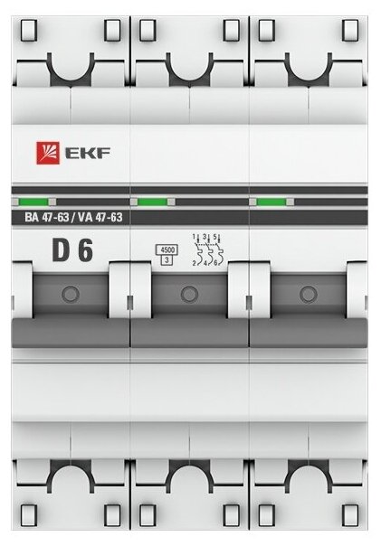 Автоматический выключатель 3P 6А (D) 4,5kA ВА 47-63 EKF PROxima информация: