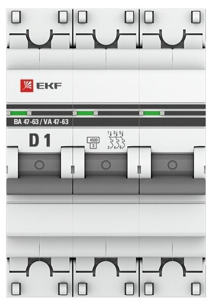 Автоматический выключатель 3P 1А (D) 4,5kA ВА 47-63 EKF PROxima информация: