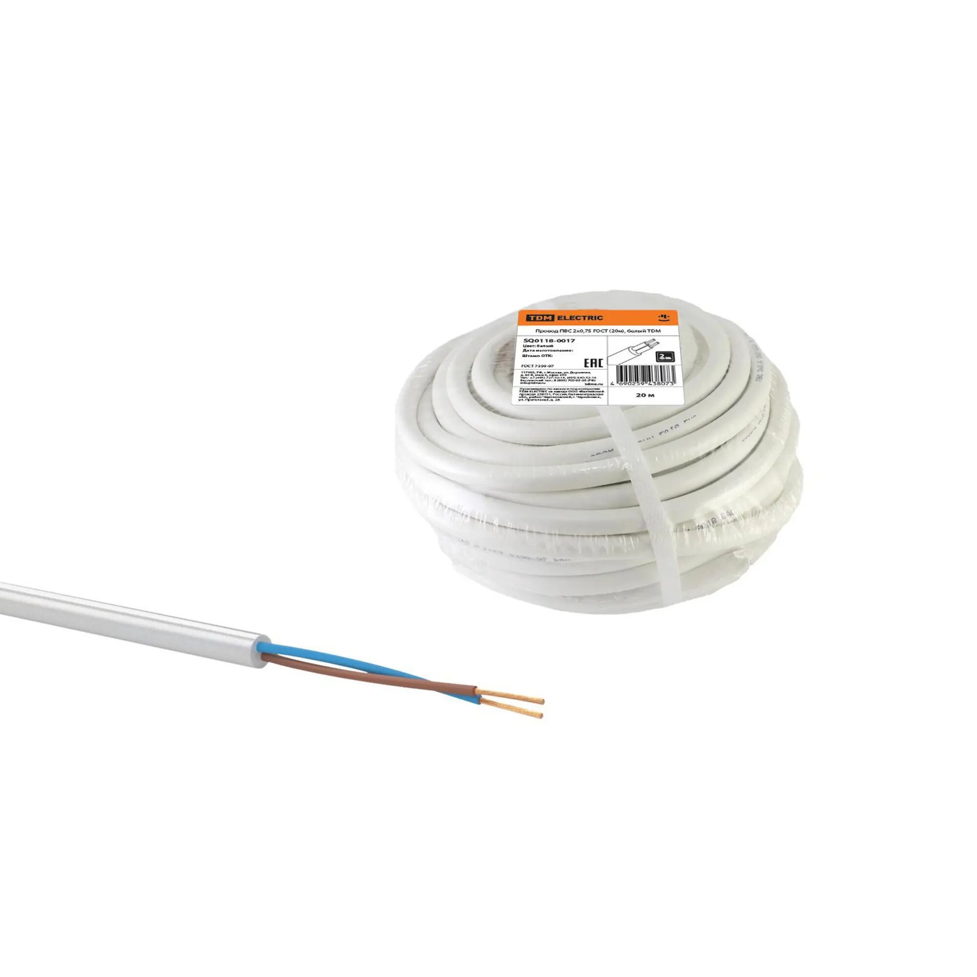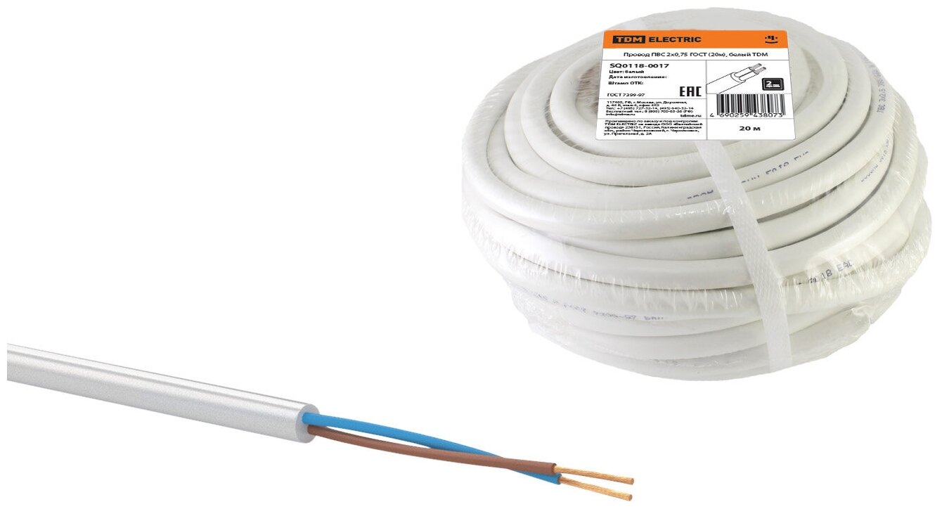 Провод ПВС 2х0,75 ГОСТ (20м), белый TDM информация: