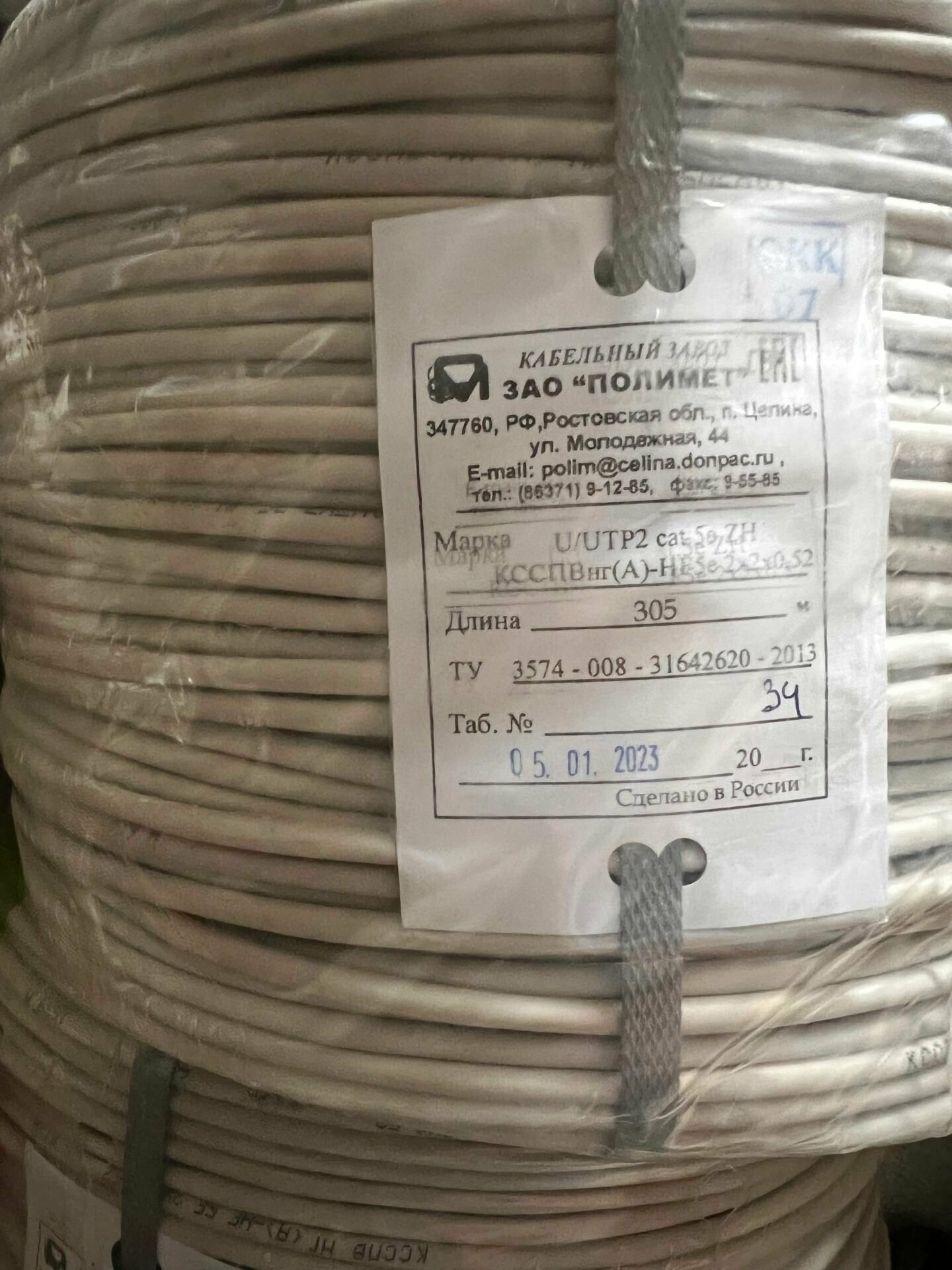 Сертифицированный отечественный кабель сетевой (UTP) ксспвнг(А)-HF 5е 2х2х0,52 Cu медный ТУ Полимет (305 м.) 3 965 ₽