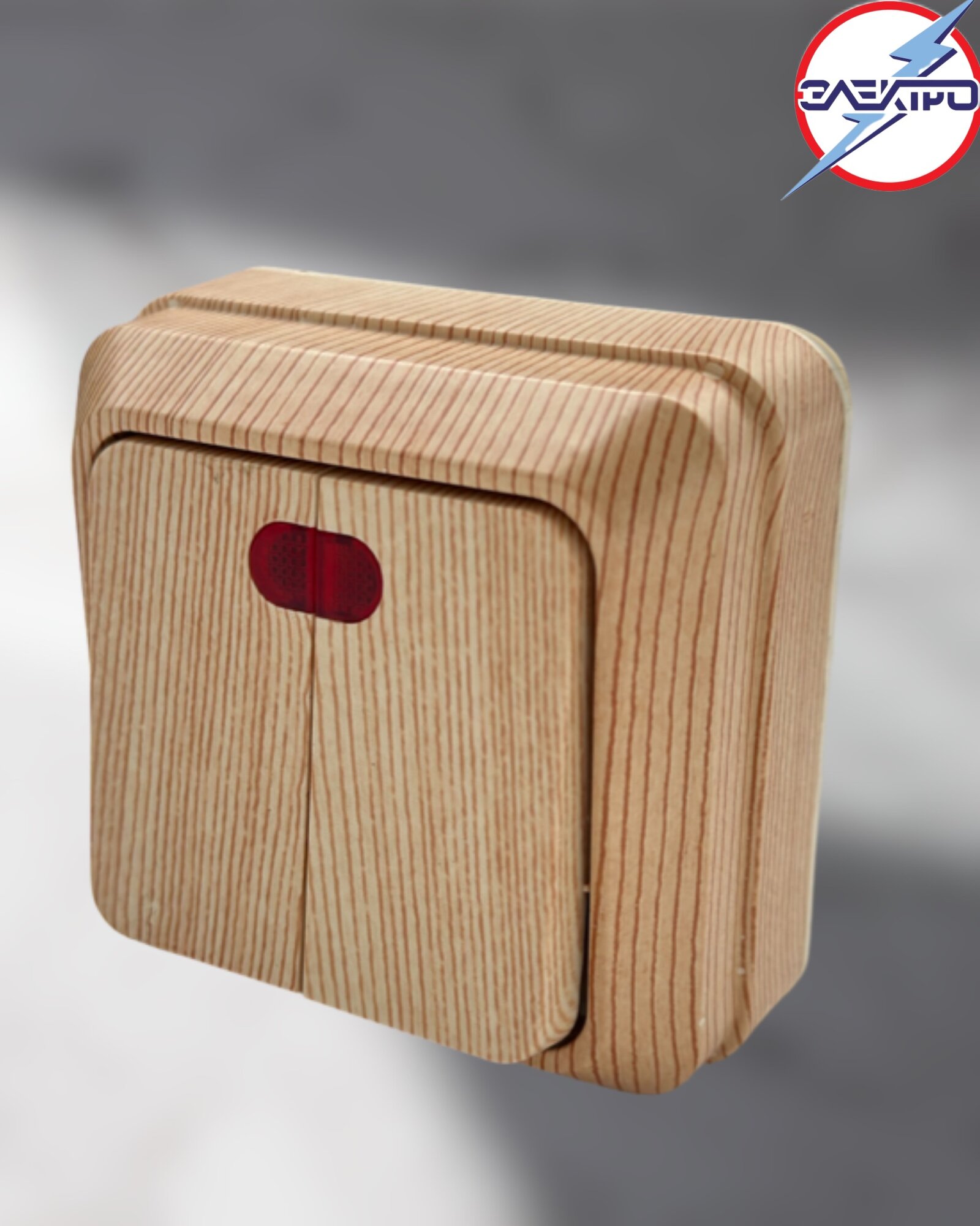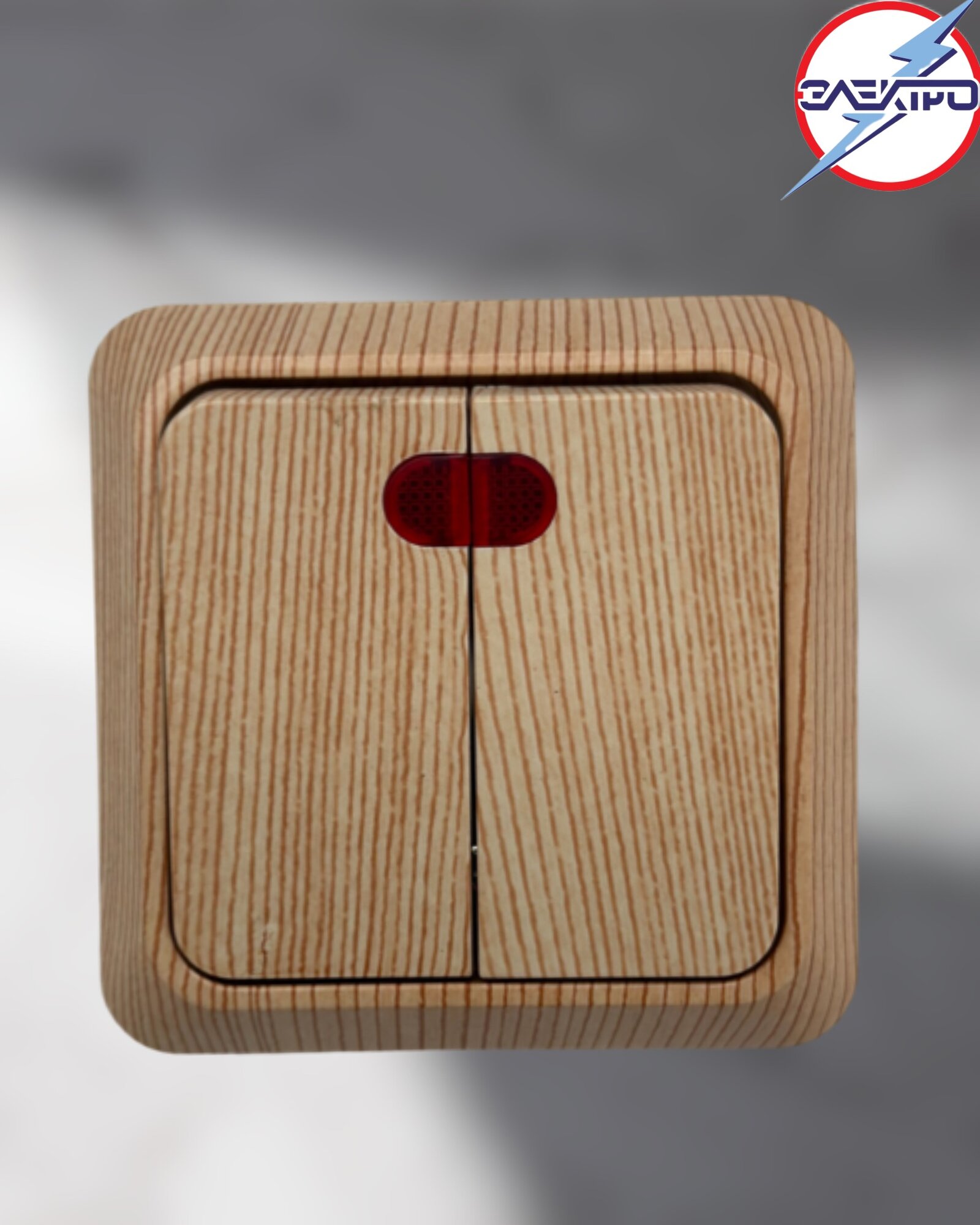 Выключатель двухклавишный наружный, с подсветкой, сосна информация: