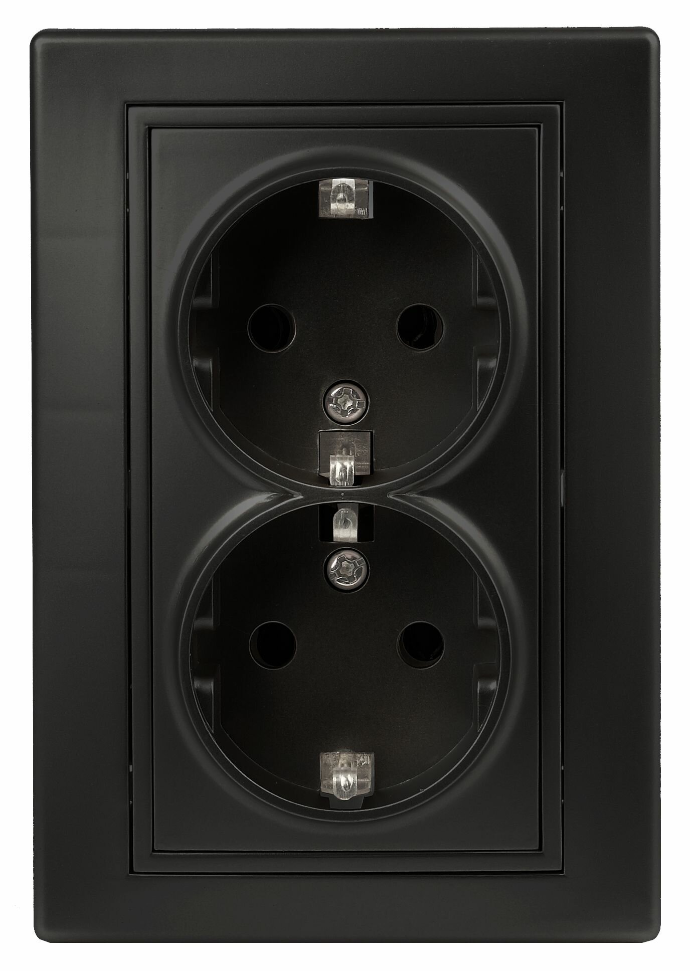 Розетка Intro Plano 1-205-05 с заземлением двойная 2X2P+E Schuko 16А-250В IP20 скрытой установки черный информация: