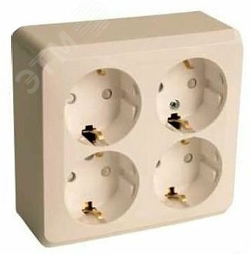 Розетка Schneider Electric Этюд четырехместная с заземлением с защитными шторками кремовая для открытой проводки (комплект из 2 шт) информация: