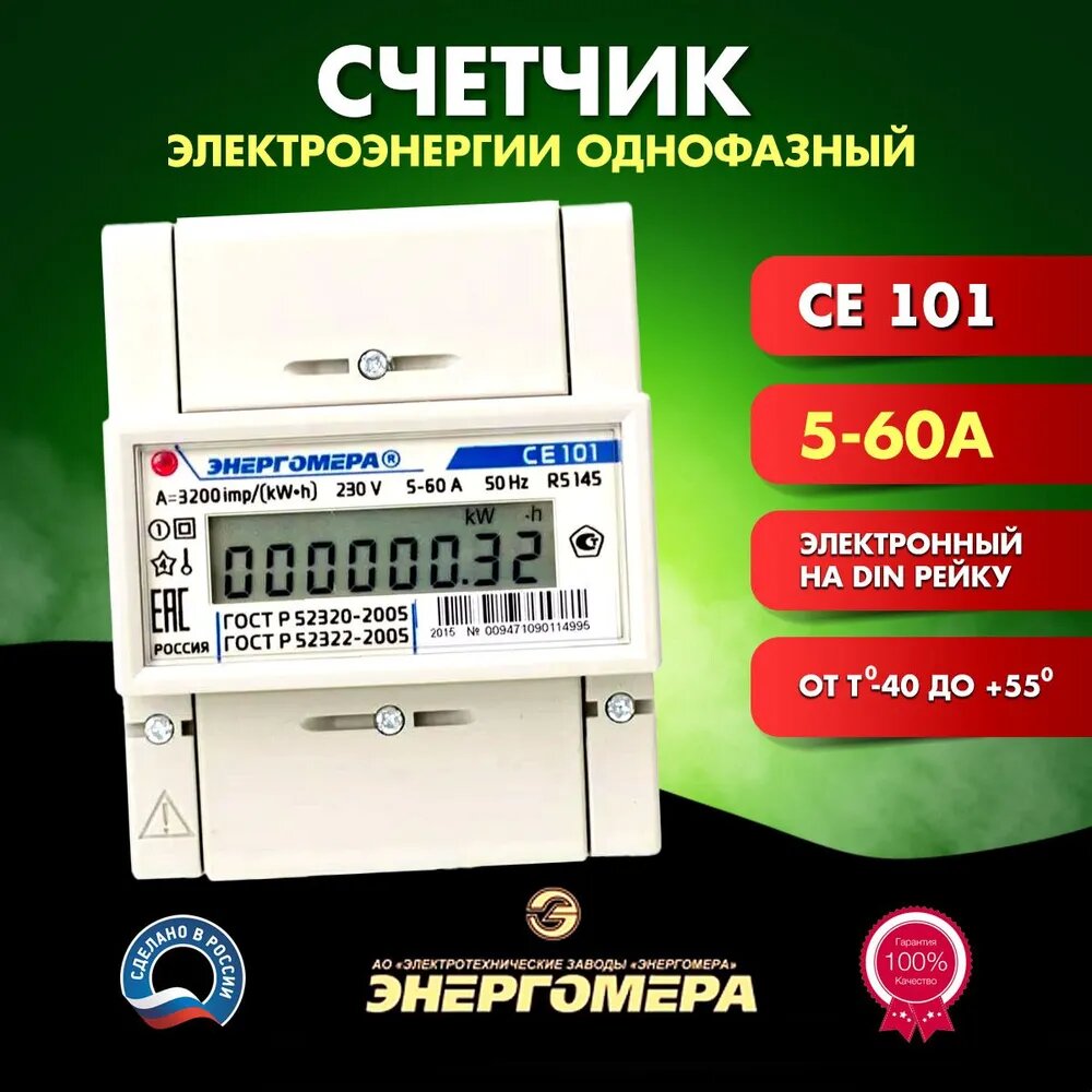 Отзывы на Счетчик электроэнергии однофазный СЕ 101 R5 145 5-60А 1-тарифный на динрейку