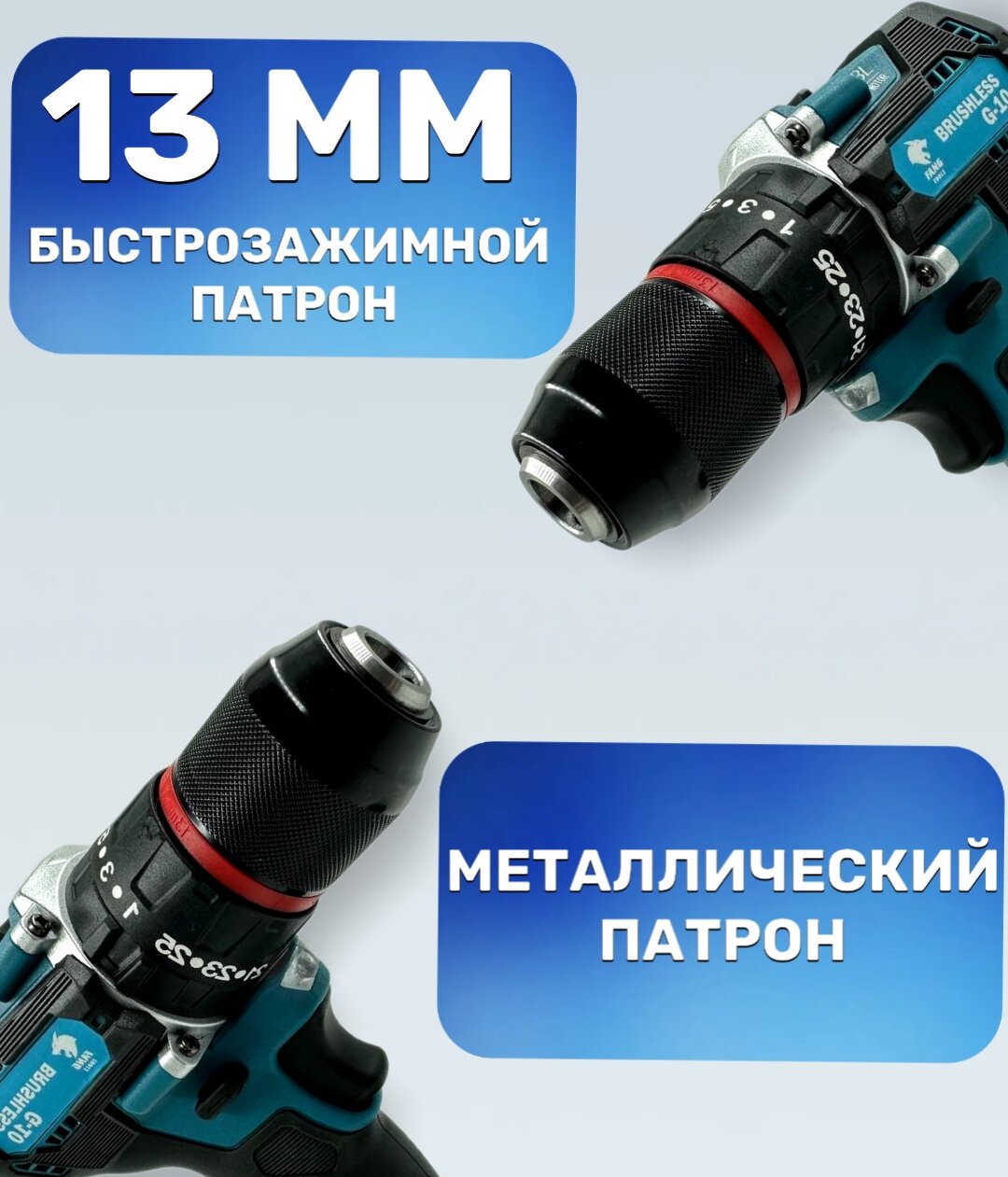 Бесщеточный аккумуляторный дрель-шуруповерт, 13 мм быстрозажимной, кейс с набором инструментов,24 в 1,6 сверл, 6 бит,9 головок, 2 АКБ,FANG TOOLS информация: