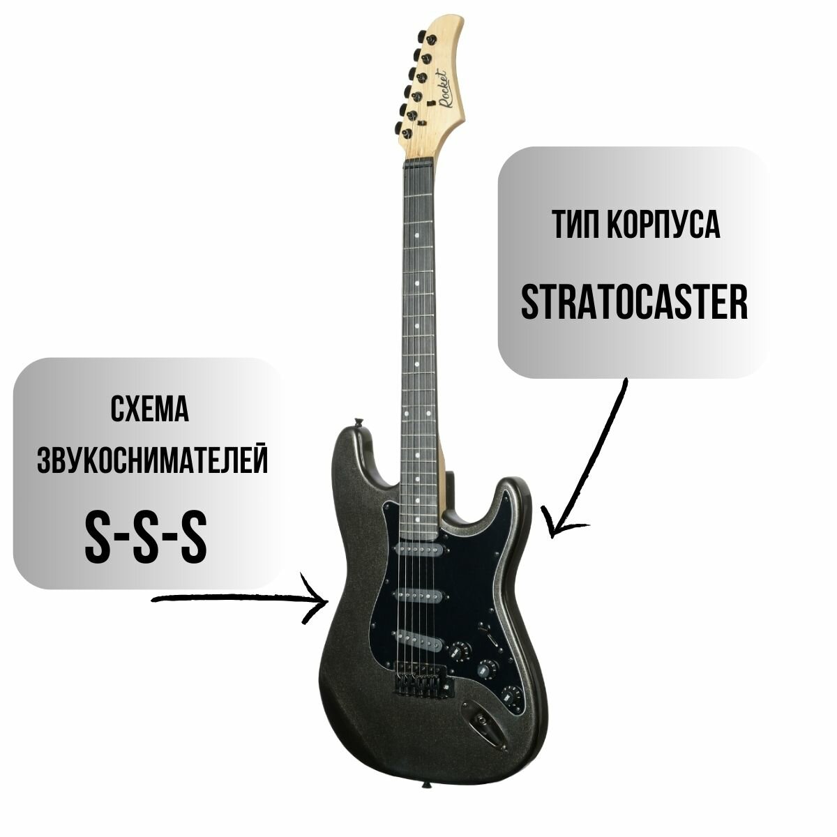 Отзывы на Электрогитара ROCKET ST-03 BK Stratocaster SSS черный металлик в комплекте шнур Jack-Jack фурнитура черного цвета