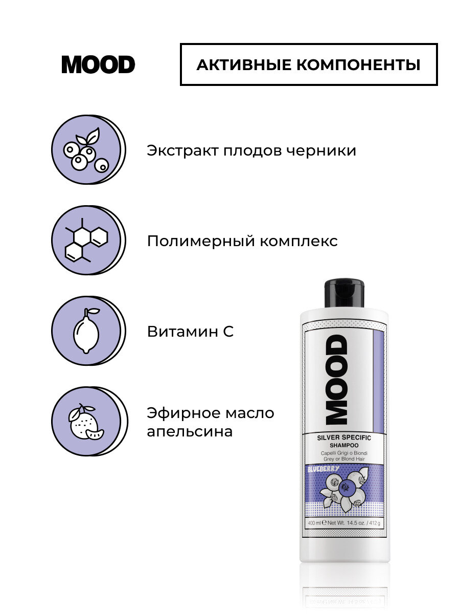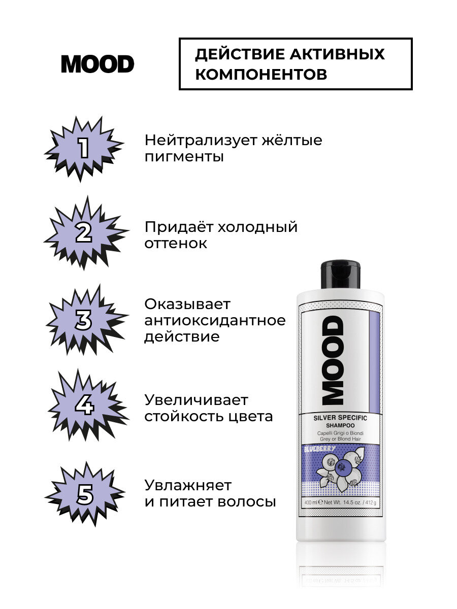 Шампунь «Серебристый» для осветлённых волос Silver Specific Shampoo Mood, 400 мл информация: