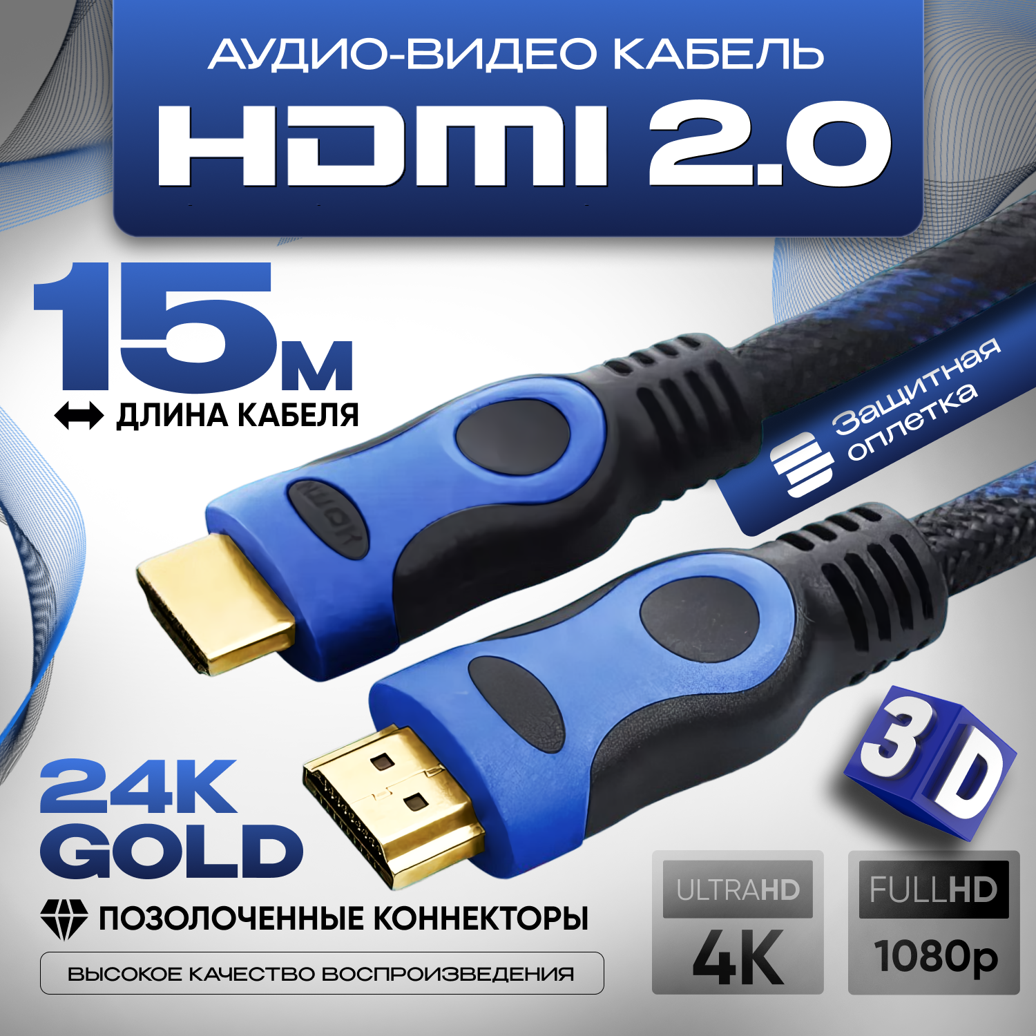 10 цен на Кабель аудио видео HDMI М-М 15 м, 1080 FullHD 4K UltraHD провод HDMI, кабель hdmi 2.0 цифровой, черно-синий