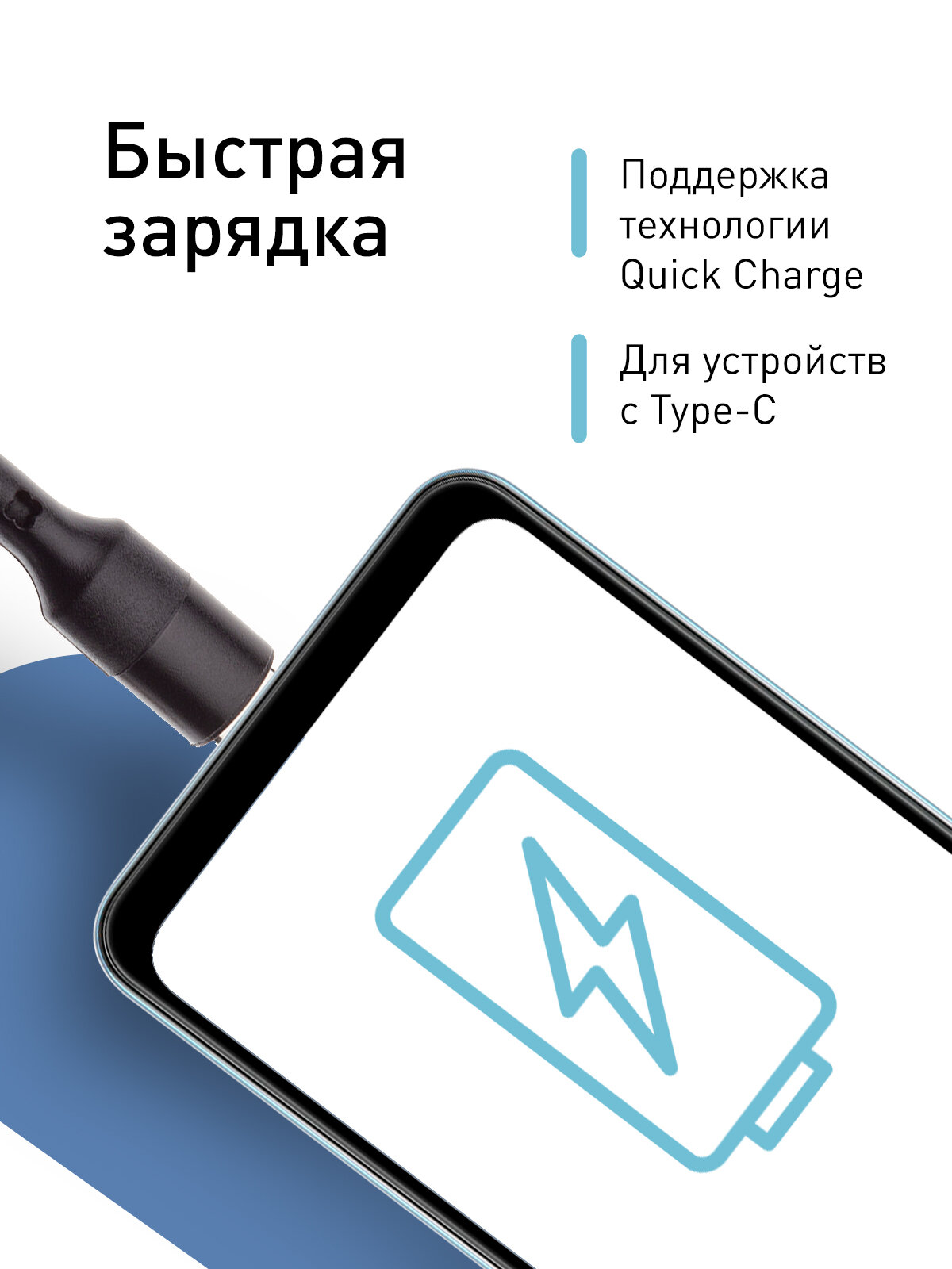 Зарядный кабель USB Type-C to Type-C Rosco, быстрая зарядка 65W, в нейлоновой оплётке, чёрный, 2 метра 537 ₽