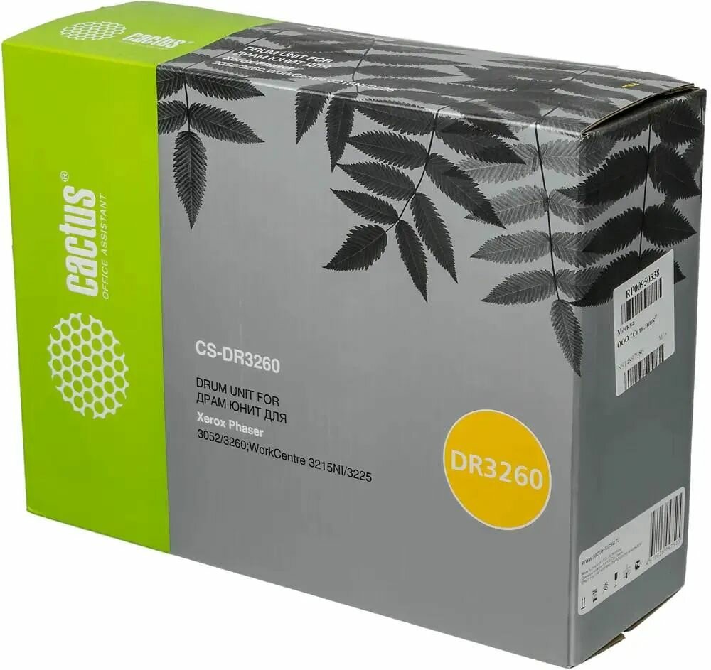 Отзывы на Блок фотобарабана Cactus 101R00474, черный ресурс до 10000стр., для Xerox PH 3052/3260 WC 3215/3225 (CS-DR3260)