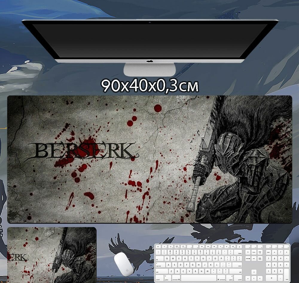 Коврик для мыши в стиле Аниме Берсерк 90x40x0.3см, №20 Серый/Белый 1 400 ₽