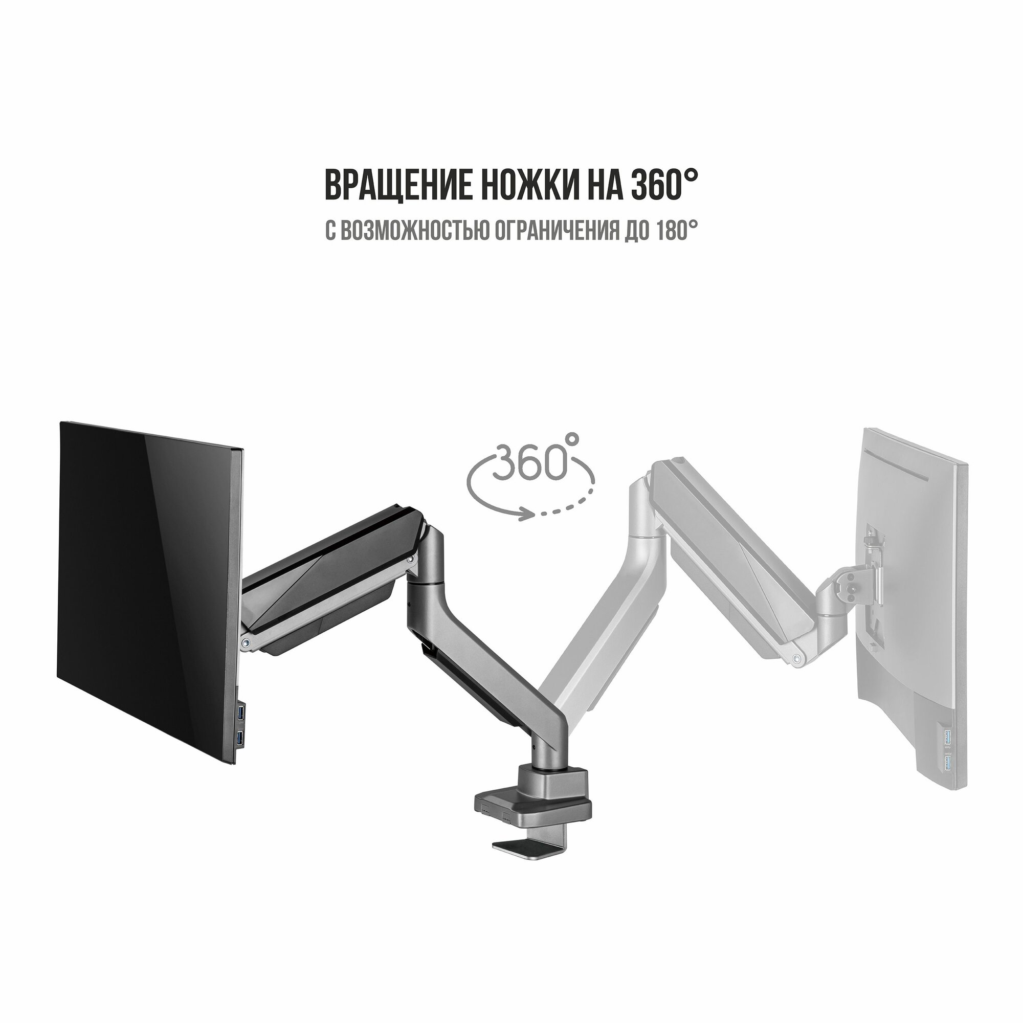 Кронштейн для монитора с газлифтом Ergostol Arm Pro, подставка под монитор 17"-49" дюймов до 18 кг, настольный информация: