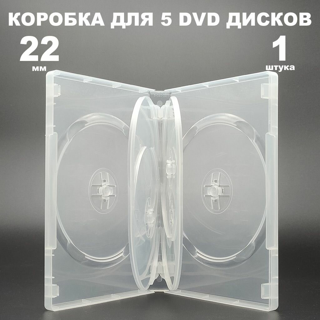 Коробка DVD на 5 дисков прозрачная, 1 штука / Бокс DVD на 5 дисков с треем, clear, 22 мм информация: