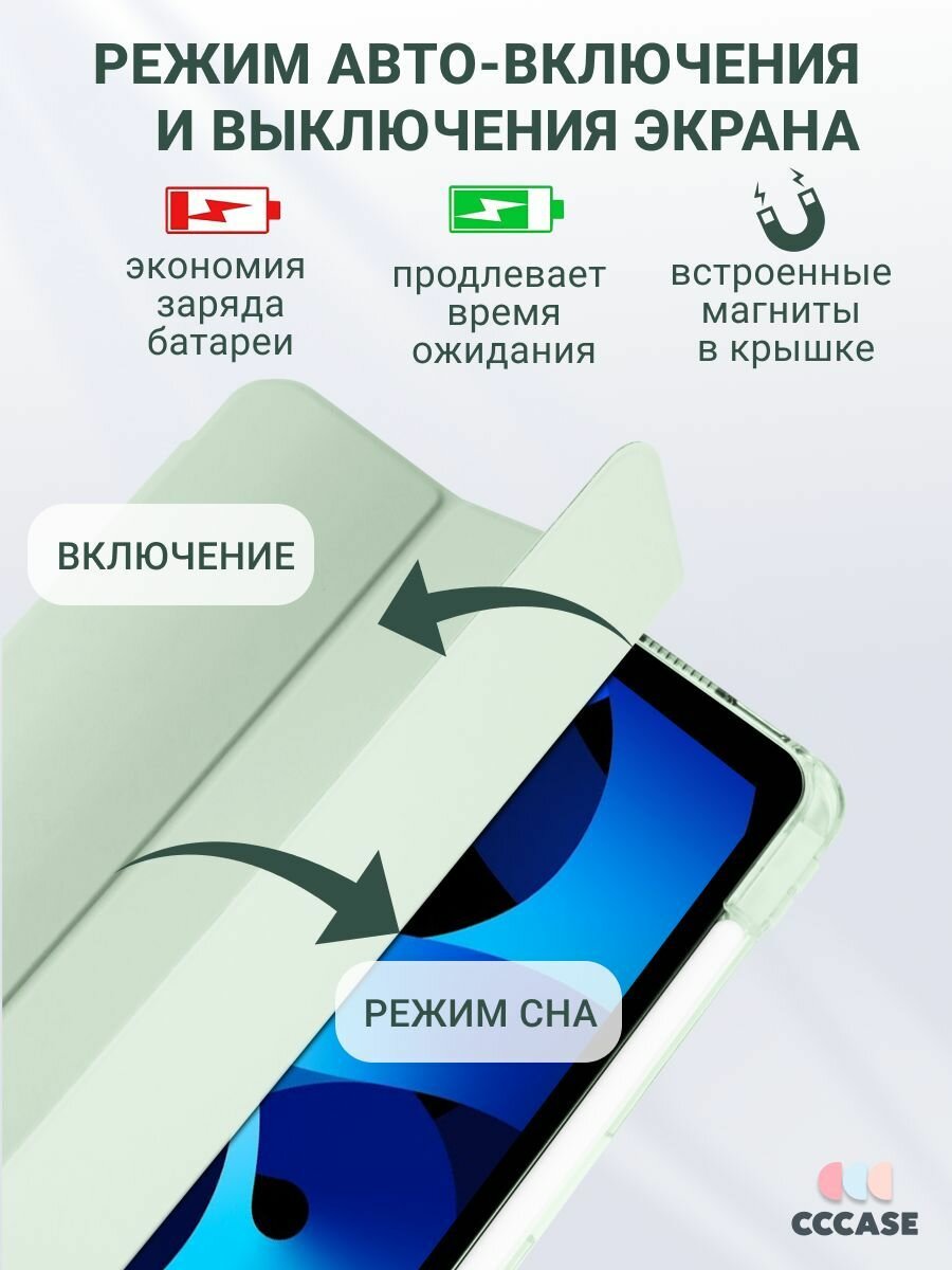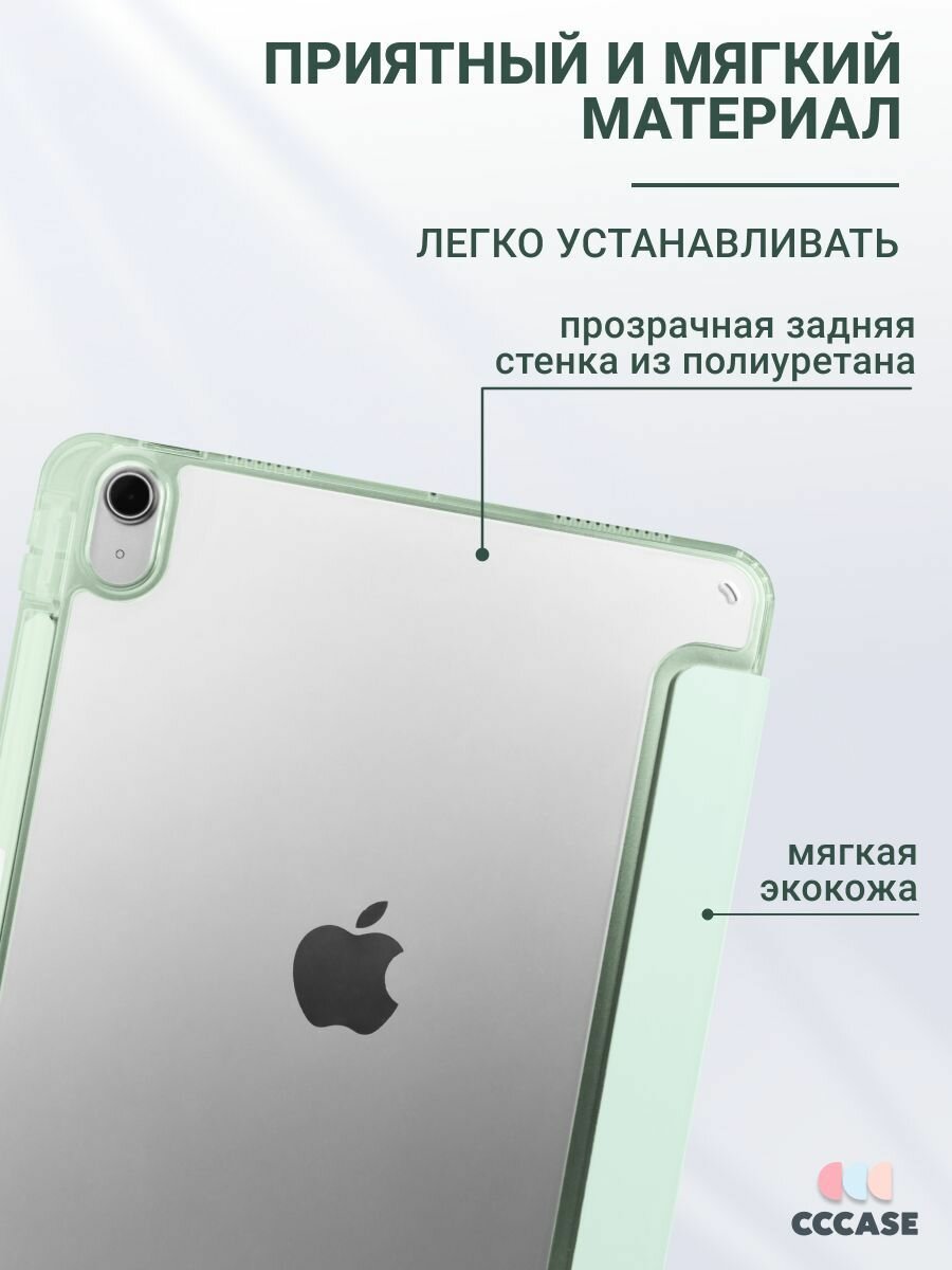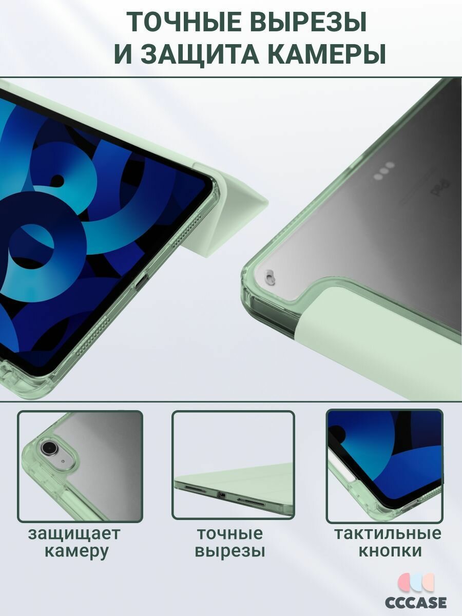 CCCASE / Чехол на iPad Air 6 11(2024); iPad Air 5 10.9 (2022); iPad Air 4 10.9 (2020) - A2316 A2324 A2325 A2072 A2588 A2589 A2591 A2902 A2903 A2904, с отделением для стилуса и прозрачной стенкой, цвет: светло-зеленый информация: