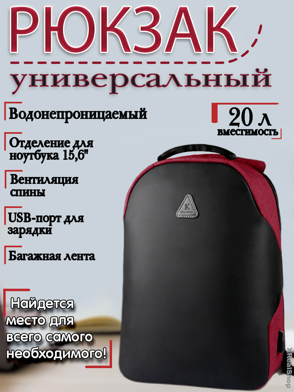 10 цен на Рюкзак, рюкзак универсальный, портфель, для работы и учебы, защита от воды, отделение-органайзер, USB-порт для зарядки, красный