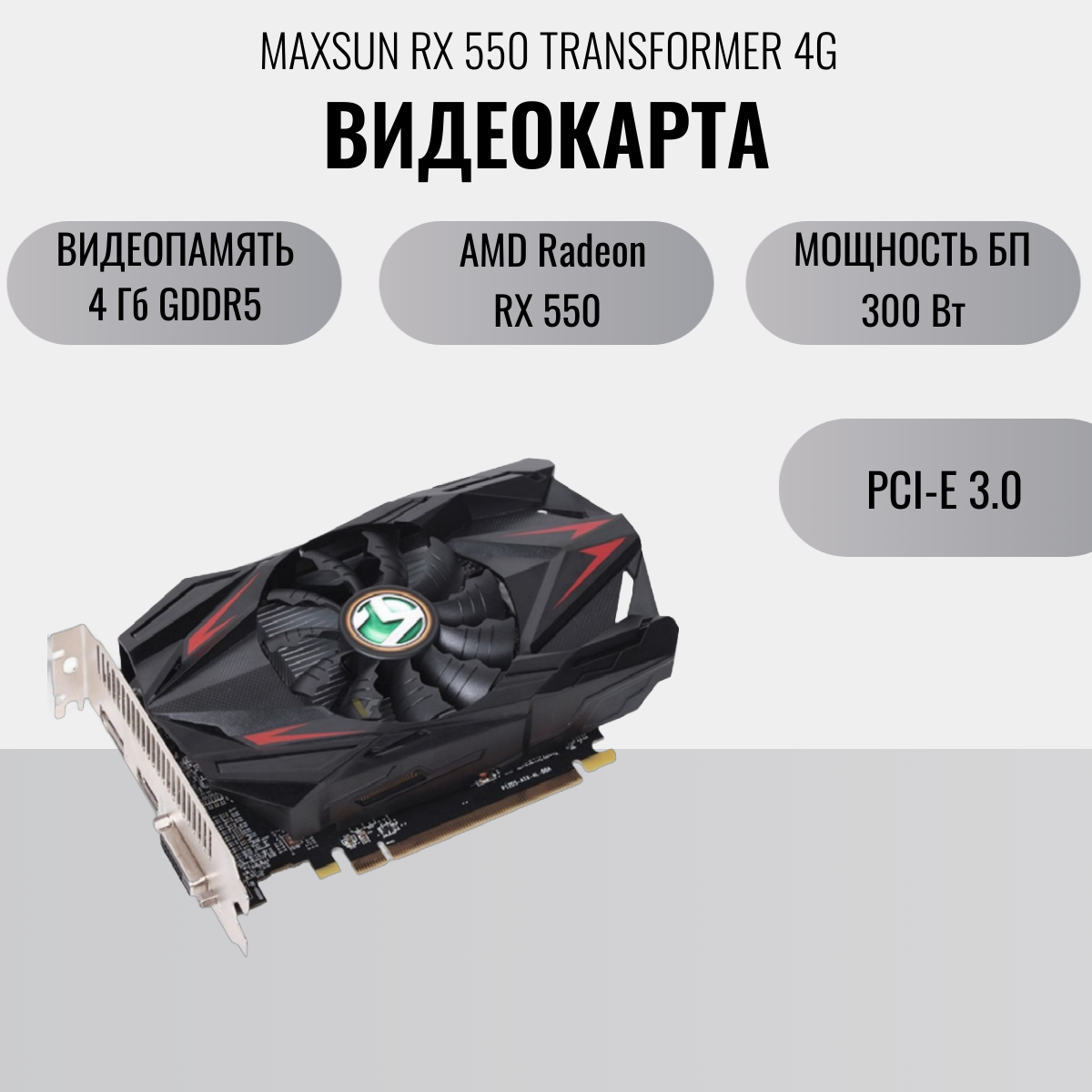 10 цен на Видеокарта MAXSUN PCI-E ATI RX 550 4Gb 128Bit DDR5 HDMI/DP RX 550 TRANSFORMER 4G