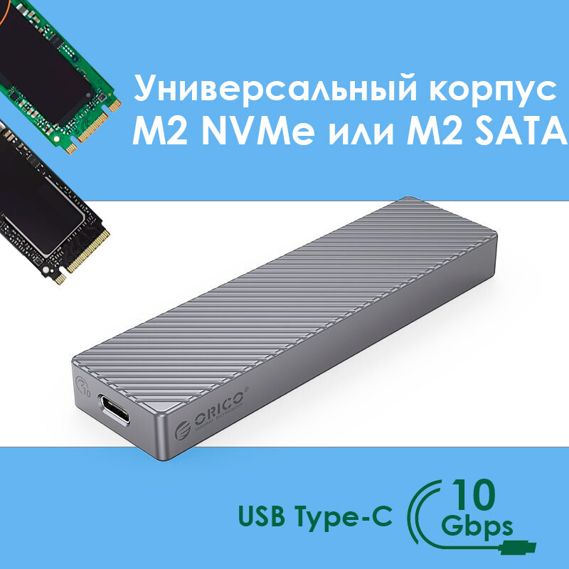 Универсальный переходник (внешний бокс) M.2 NVMe PCI-E, M.2 NGFF SATA - USB 3.2 Type-C ORICO FullV Grey Box (Gen 2x1 10 Gbps) информация: