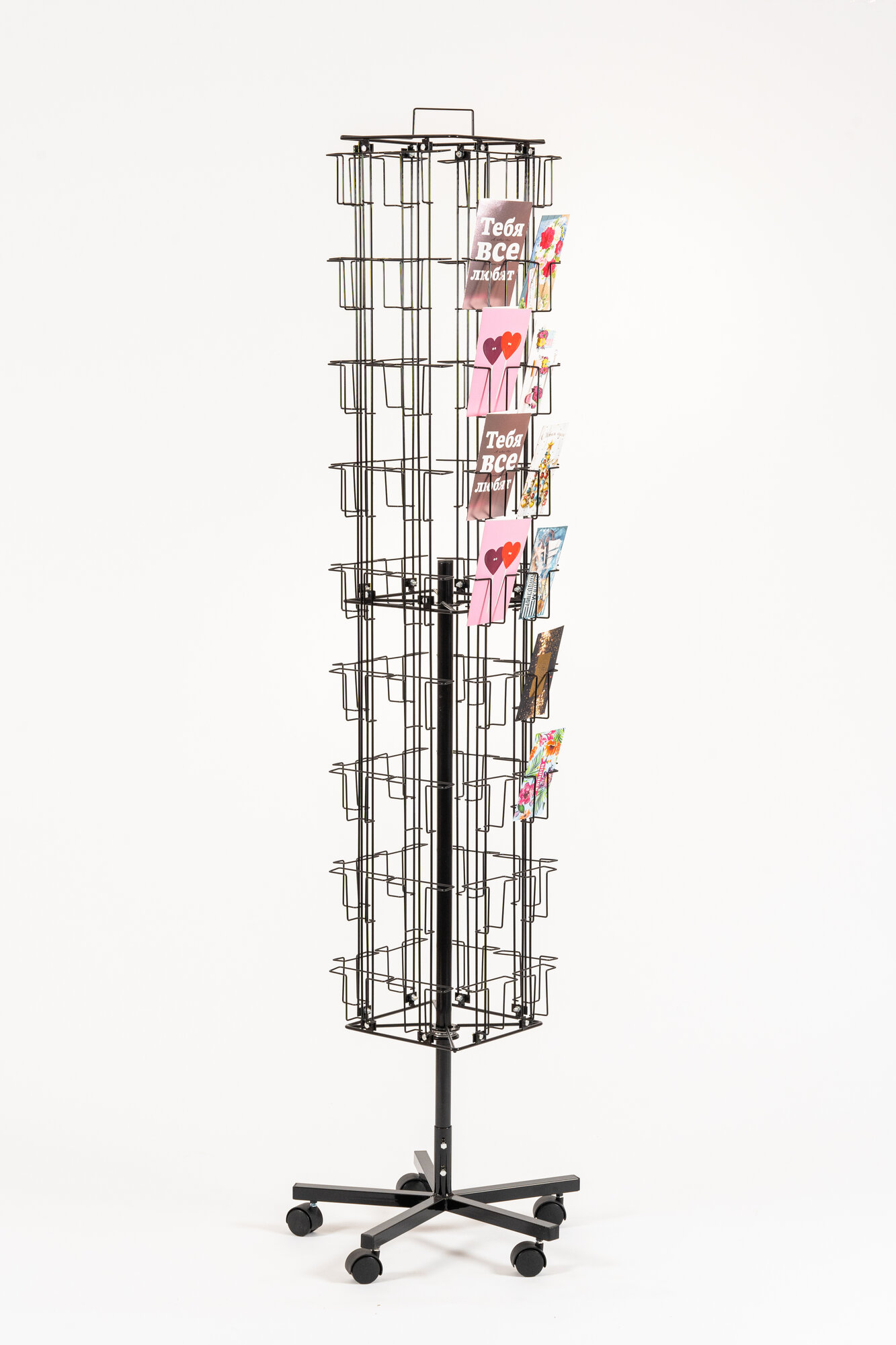 Торговое оборудование для магазина ,стойка для открыток напольная на колесиках, черная, 72 кармана информация: