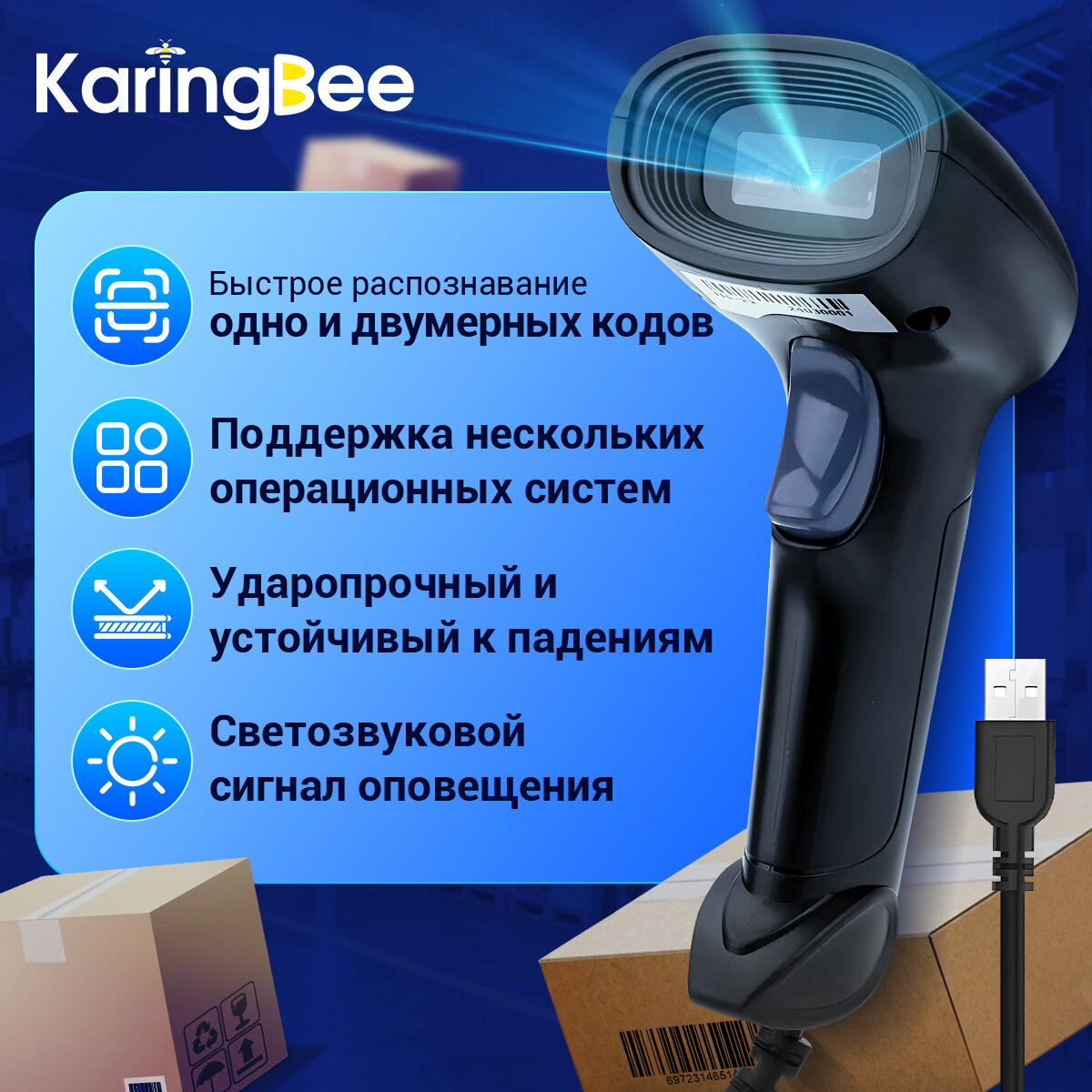 Проводной 1D / 2D сканер штрих-кода Karingbee HS22 с поддержкой ЕГАИС информация: