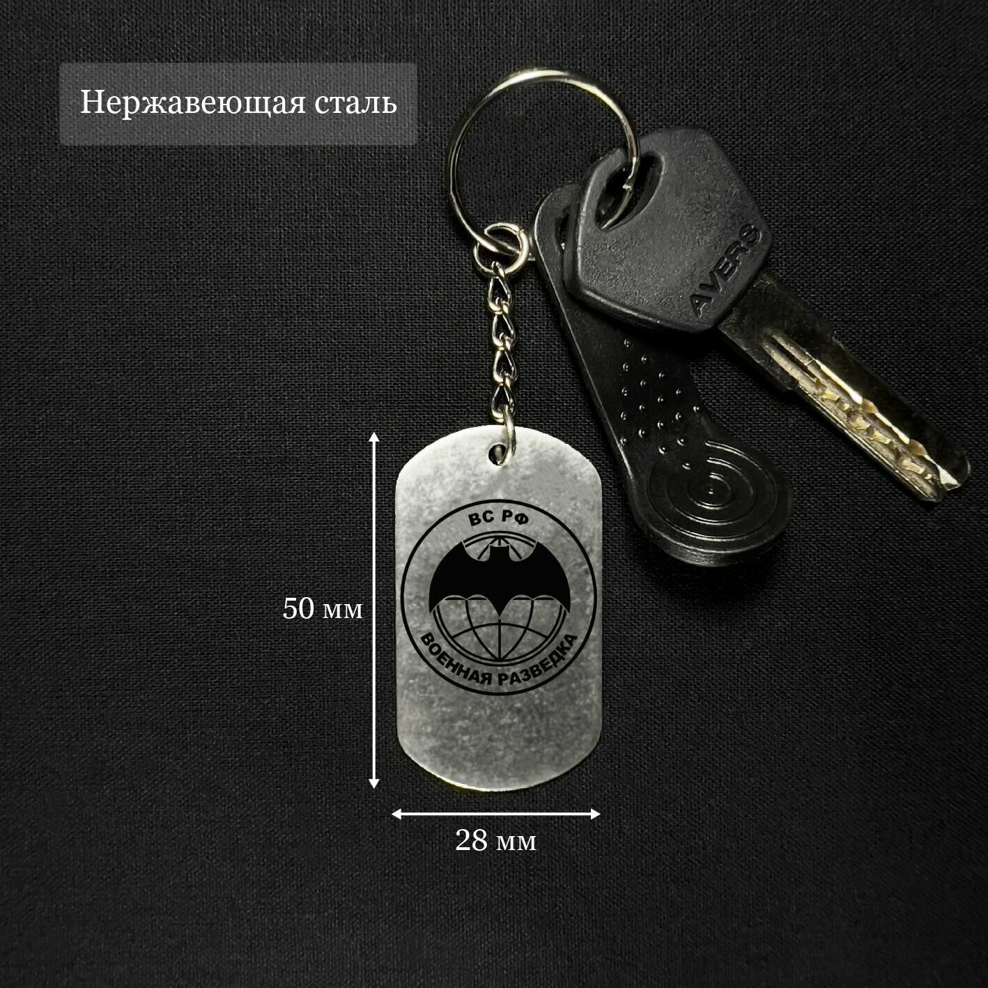 Брелок на ключи с гравировкой Военная разведка, отечество, доблесть, честь информация: