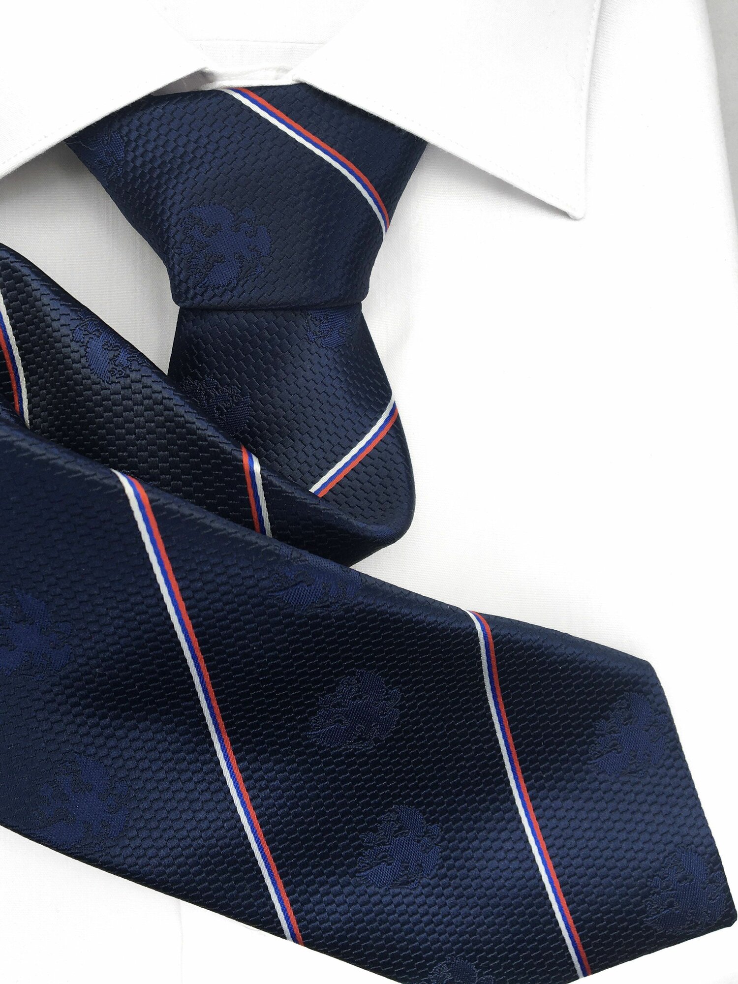 Галстук мужской синий с российскими гербами и флагом РФ информация: