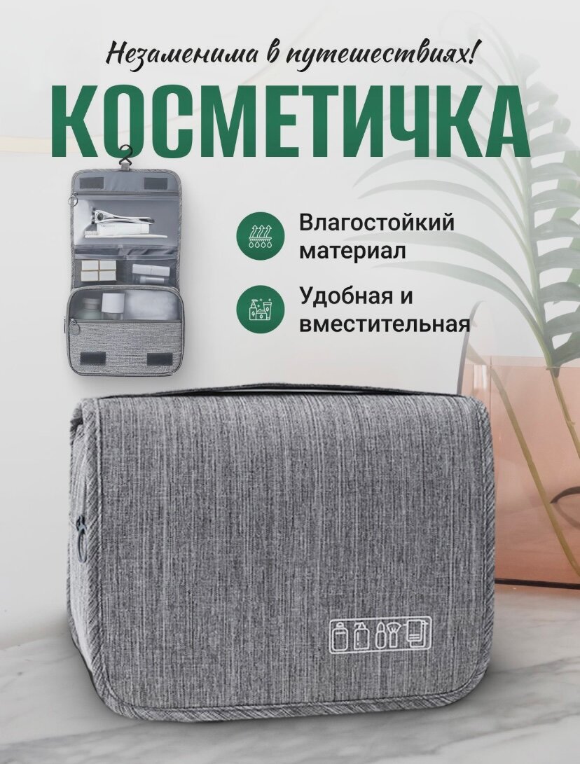 Косметичка дорожная органайзер для путешествий, серая информация:
