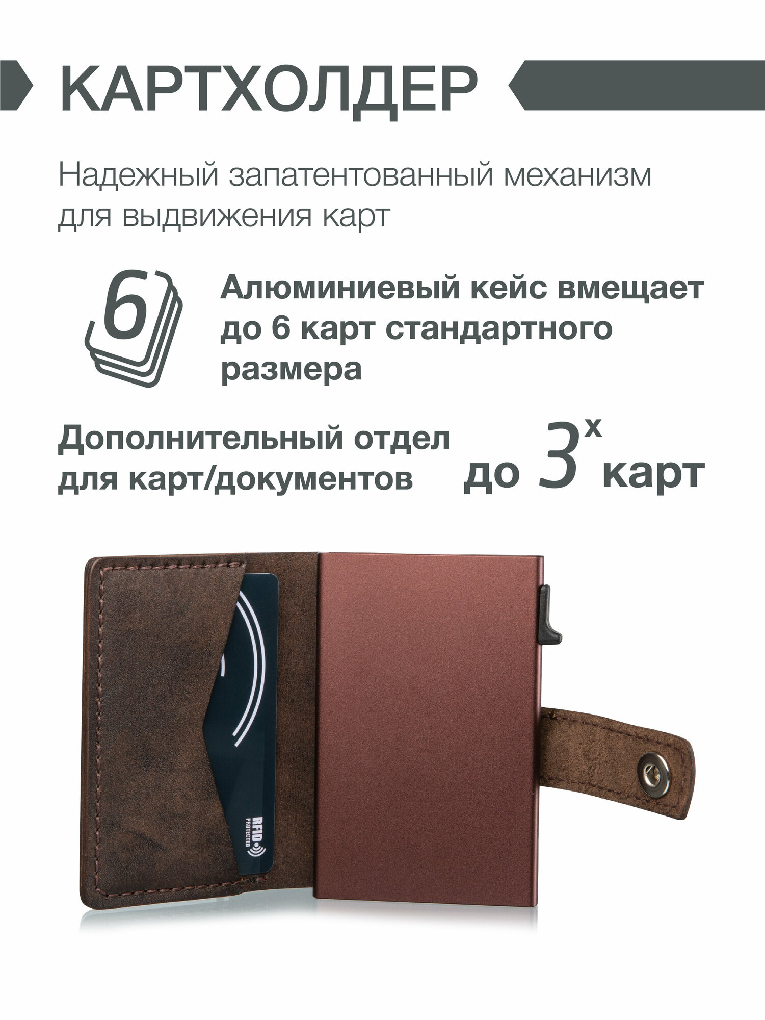 10 цен на Мини-кошелек CardGo из натуральной кожи со встроенным алюминиевым корпусом (RFID / NFC защита) темно-коричневый