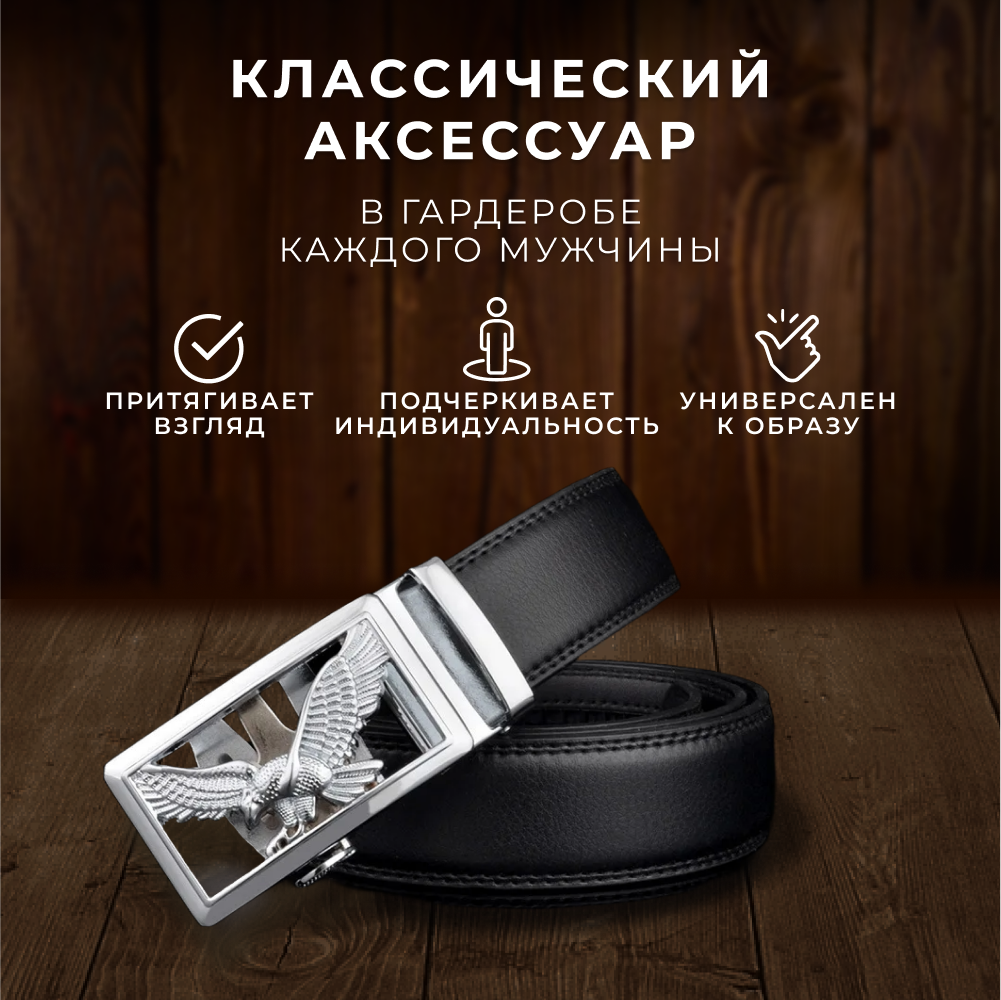 Ремень автоматический классический / Ремень мужской натуральная кожа / Ремень мужской повседневный для брюк и для джинсов информация: