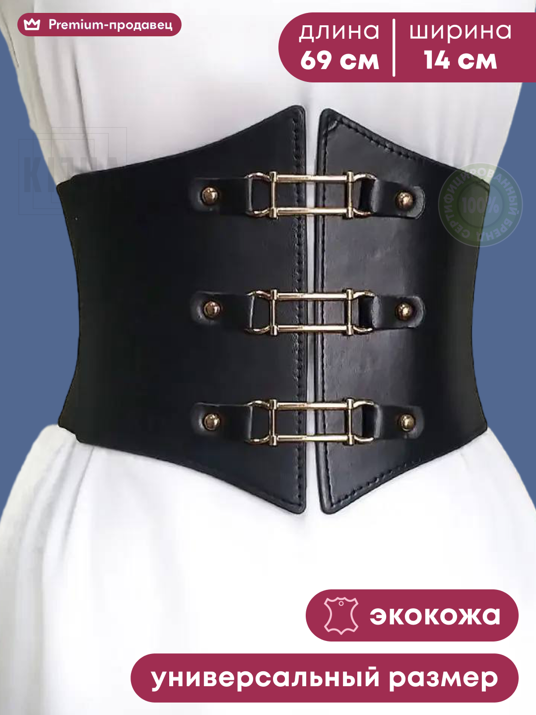 Пояс женский, пояс для платья, корсет на рубашку, широкий, на резинке, черный информация: