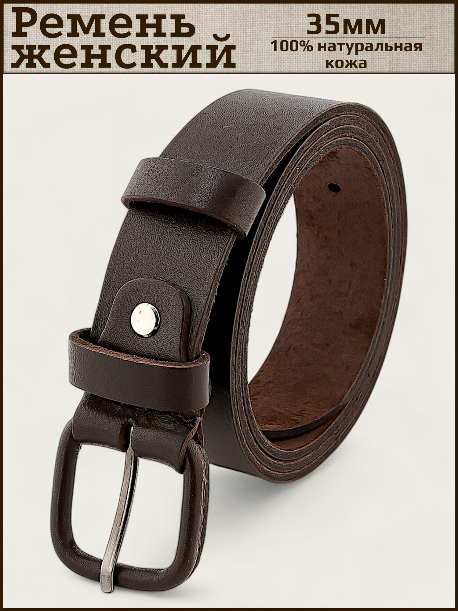 10 цен на Ремень женский натуральная кожа AKSY BELT, темный коричневый, гладкий, кожаная пряжка, 115 см
