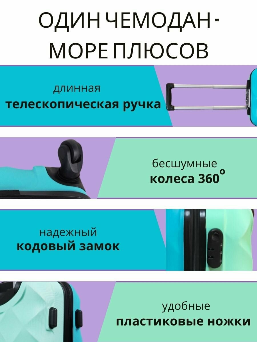 Дорожный чемодан на колесах маленький S, бирюзово-мятный информация: