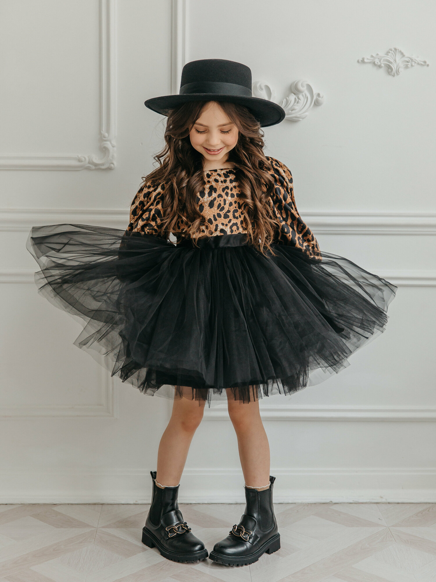 Платье-пачка 134 см черный леопард шелковое нарядное 6 900 ₽
