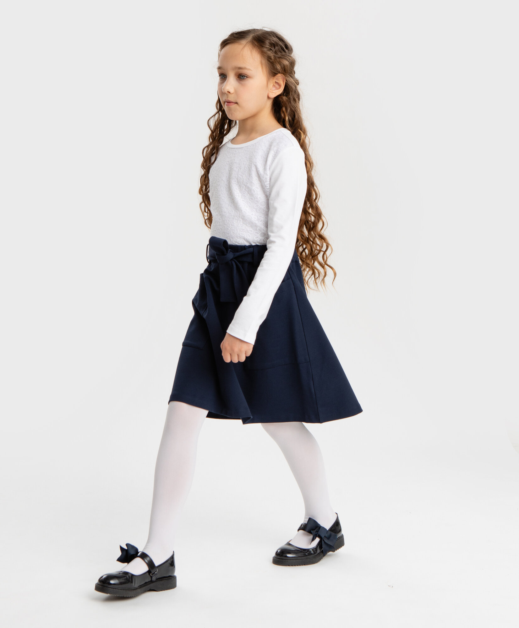 10 цен на Юбка с накладными карманами трапецевидная синяя Button Blue, р. 164, мод. 224BBGS55011000