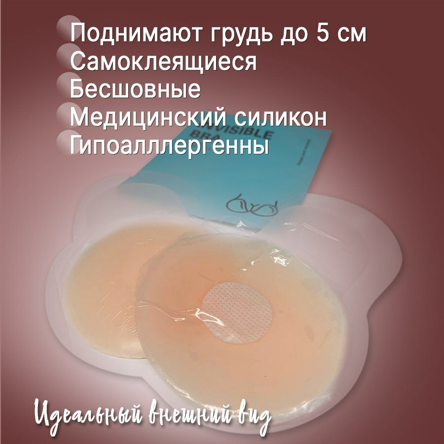 Многоразовые силиконовые накладки на грудь пуш-ап / Пэстисы на груди стикини вкладыши / Наклейки на соски невидимый бюстгальтер без лямок и бретелей/ 1 пара информация: