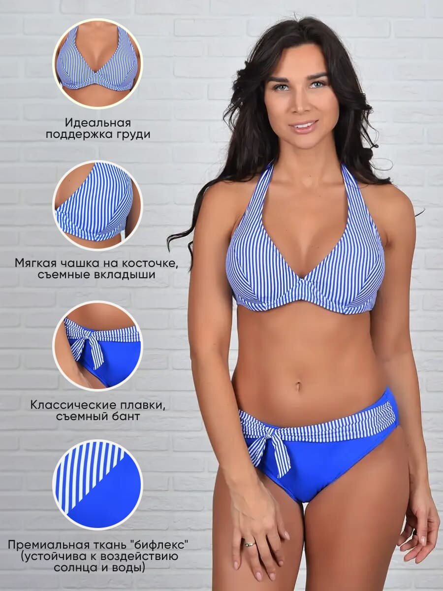 Отзывы на Купальник женский раздельный больших размеров MollenaLayers, с завышенной талией, размер 48, голубой, белый