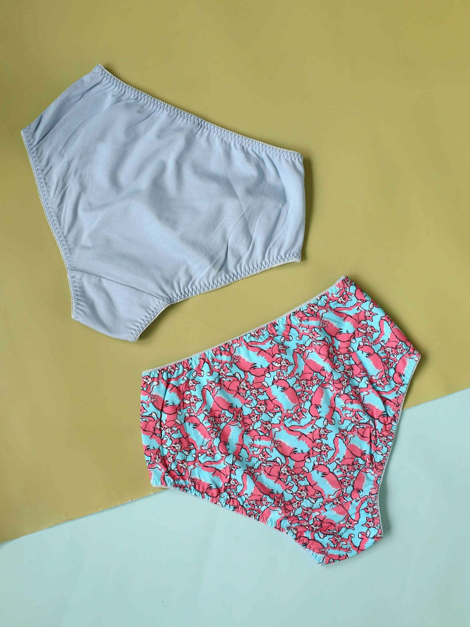 Отзывы на Женский комплект трусиков с высокой посадкой, хлопковые слипы, большие размеры 2 шт "Голубой/Лежебоки" XS