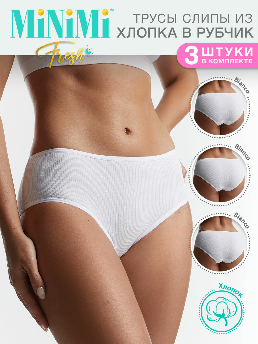 10 цен на Женские трусы MFR222 Ribana Slip Midi в рубчик, набор 3 пары, цвет Bianco размер 46 (M)